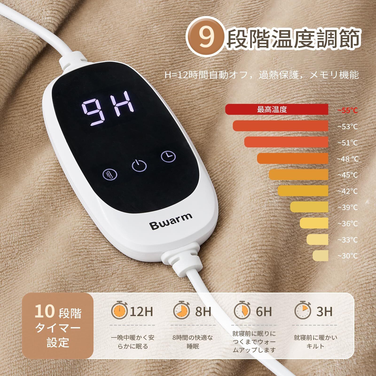 多段温度調整&記憶機能:Bwarm電気毛布は1〜9段階の温度調整が可能で、9段階が最高温度となり、ダニを駆除する効果もあります。さらに、1〜9時間のタイマー機能が搭載され、最長12時間の自動オフ機能もあります。これにより、省エネ効果があり、低温やけどを防止できます。温度とタイマー設定は自動的に記憶され、停電しない限り、毎回設定をし直す必要はありません。電源を切った後に再度オンにすると、前回の設定がそのまま保持され、使用がさらに便利になります。 柔らかく快適な温もり:Bwarm電気毛布は高品質なフランネル素材を使用しており、非常に柔らかい手触りで、通電していなくても温かさを感じることができます。快適な暖かさを提供します。