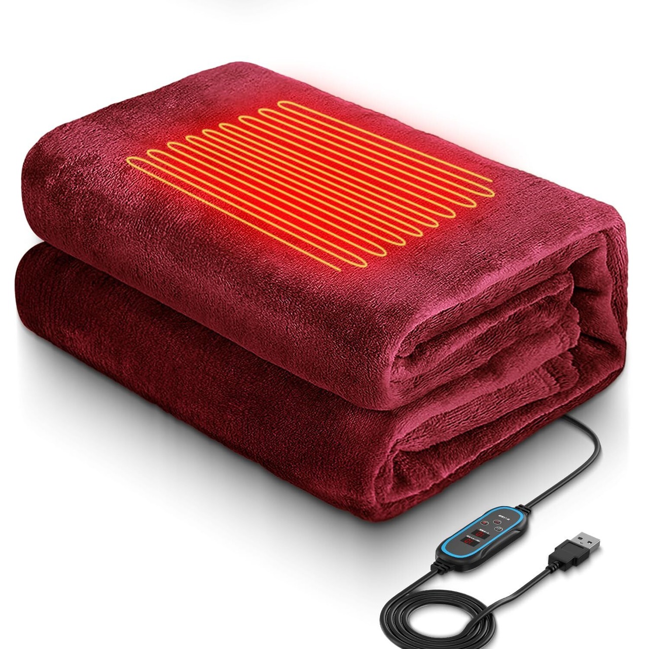 電気毛布 掛け 敷き 兼用 電気ひざ掛け 温度調節 自動オフ タイマー付き USB給電 電気ブランケット LEDディスプレイ表示 防寒対策 USBブランケット ひざ掛け 肩掛け 洗える 大判 省エネ キャンプ 車中泊 テント泊 アウトドア オフィス (レッド)