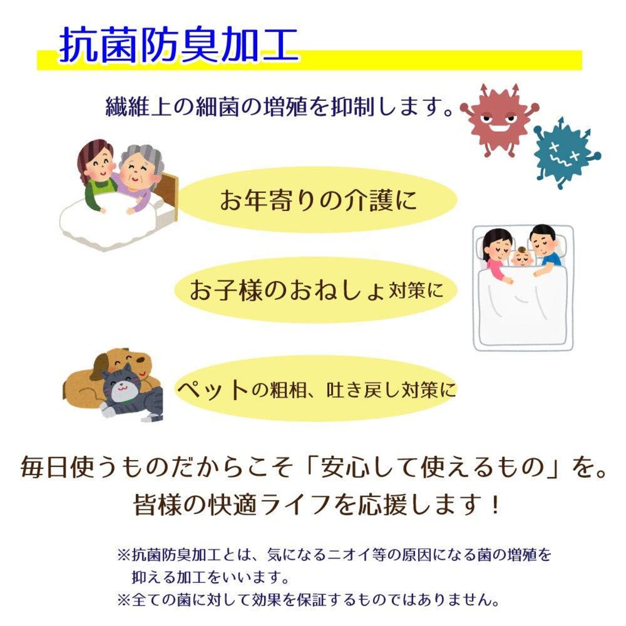 家庭での洗濯機での丸洗い、脱水、乾燥機もOK! 業務用洗濯機や乾燥機にも対応。 120℃に耐える防水フィルムを使用しているので、電気毛布や電気あんかを使用可能。 吸水性、速乾性もあるので汗をかいてもべたつきを軽減します。 ポリエステルの滑らかなスムースニット地なので綿のパイル地に比べて早く乾きます。