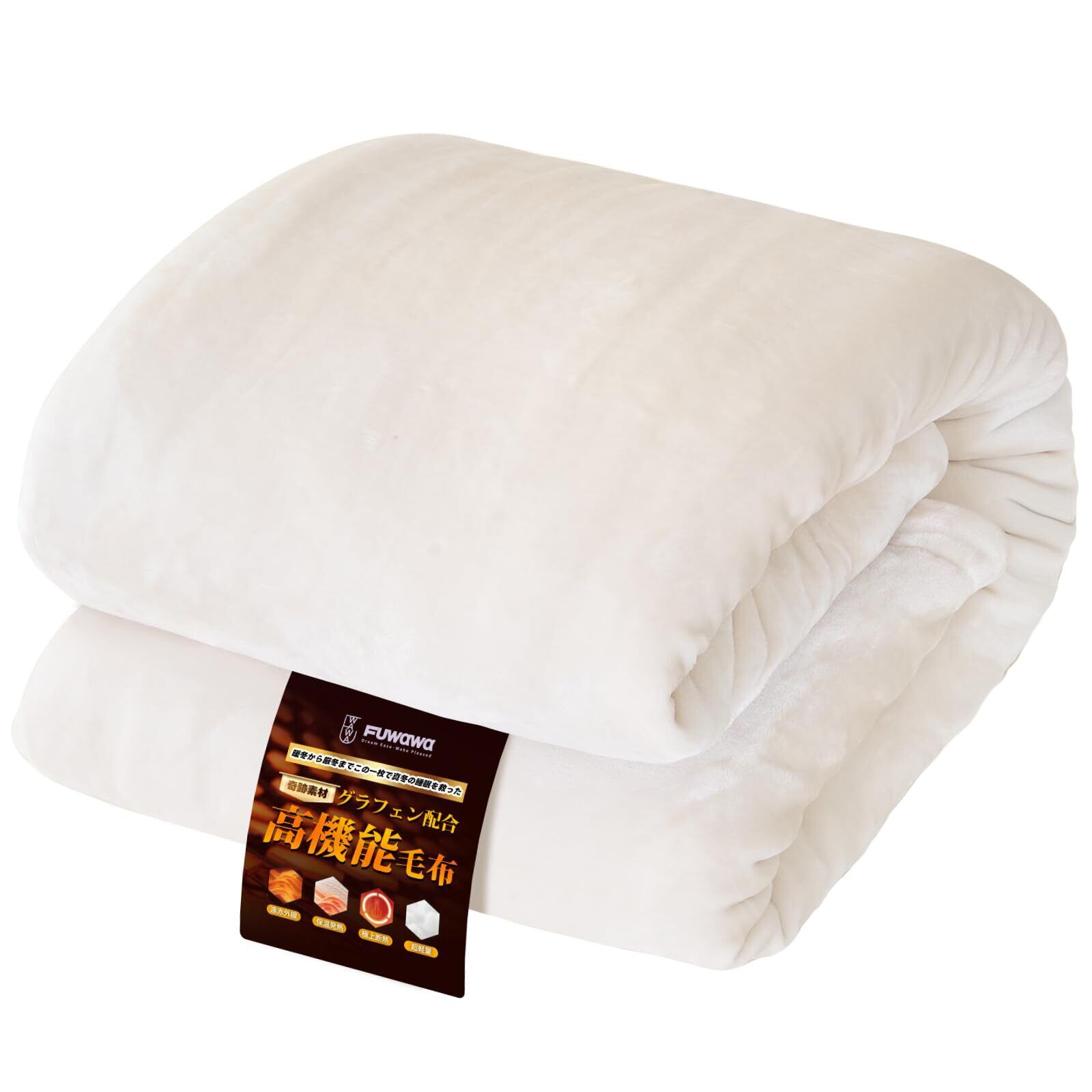 Fuwawa 毛布 冬 シングル 厚手 あったか 高密度フランネル 【ノーベル賞素材・グラフェン】 6層構造 とろける肌触り 極厚 アルミシート 極上断熱 遠赤外線 吸湿発熱 ブランケット 二枚合わせ もうふ 高機能毛布 帝人TEIJIN中綿 抗菌・防臭・防ダニ 丸洗いOK 二重静電気防止 持続温感 冬用 ボリューム感(アイボリー 140x200cm)