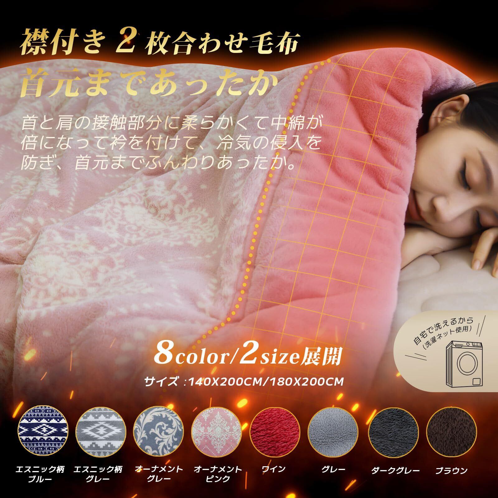 【安心の品質:抗菌防臭&洗濯可能】毛布の表裏生地は光触媒制菌加工を施して、優れた抗菌防臭効果を実現しました。汗をかいてもニオイにくく、細菌の増殖を抑制し、心地よい使用感を維持することができます。ご家庭で気軽に洗濯できます。速乾性に優れているので、洗ってもすぐに乾き、いつでも清潔にお使いいただけます。【品質】当店は日本の会社です。製品は日本国内で企画を行い、国際基準ISO9001認定を持つ中国工場で生産します、安心的な品質ができます。過剰包装を防ぎ環境を保護するため、製品は半圧縮包装されています。開封後は商品を広げて置いたり洗ったりすると、製品の折り目やふんわり感が元に戻ります。万が一商品に不具合場合あれば、1年間のをお付けしておりますので、お気軽に当店までご連絡ください。品質と対応は第一だと信じていますので、何卒よろしくお願いいたします。
