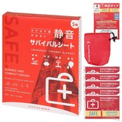 カサカサ音が少なく静かな静音タイプの防寒保温サバイバルシート ( アルミシート エマージェンシーシート EMERGENCY SHEET ) です。 スポーツ観戦や緊急災害時などにブランケットの代用としてご使用いただける、 軽量でコンパクトなアルミブランケットです。 小さな音でも大人数になると、カサカサと音がして落ち着きませんが、 このシートは耳障りな音があまりしません。 コンパクトにたたまれているため、バッグや防災リュック、車の中などに常備でき、 持ち運びやすく場所を取りません。防災ガイドを付属しており、非常持出品チェックリストや緊急ダイヤルなど災害への備えについて 必要な情報が提供されています。またコンパクトに収納できるよう専用のポーチを付属しています。