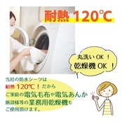 表面はしっかり丈夫なデニム素材(抗菌加工済)、裏面にスムースニット生地を使用した3層構造。耐久性・耐熱性(120℃)に優れ、業務用洗濯機にも対応した防水シーツです。