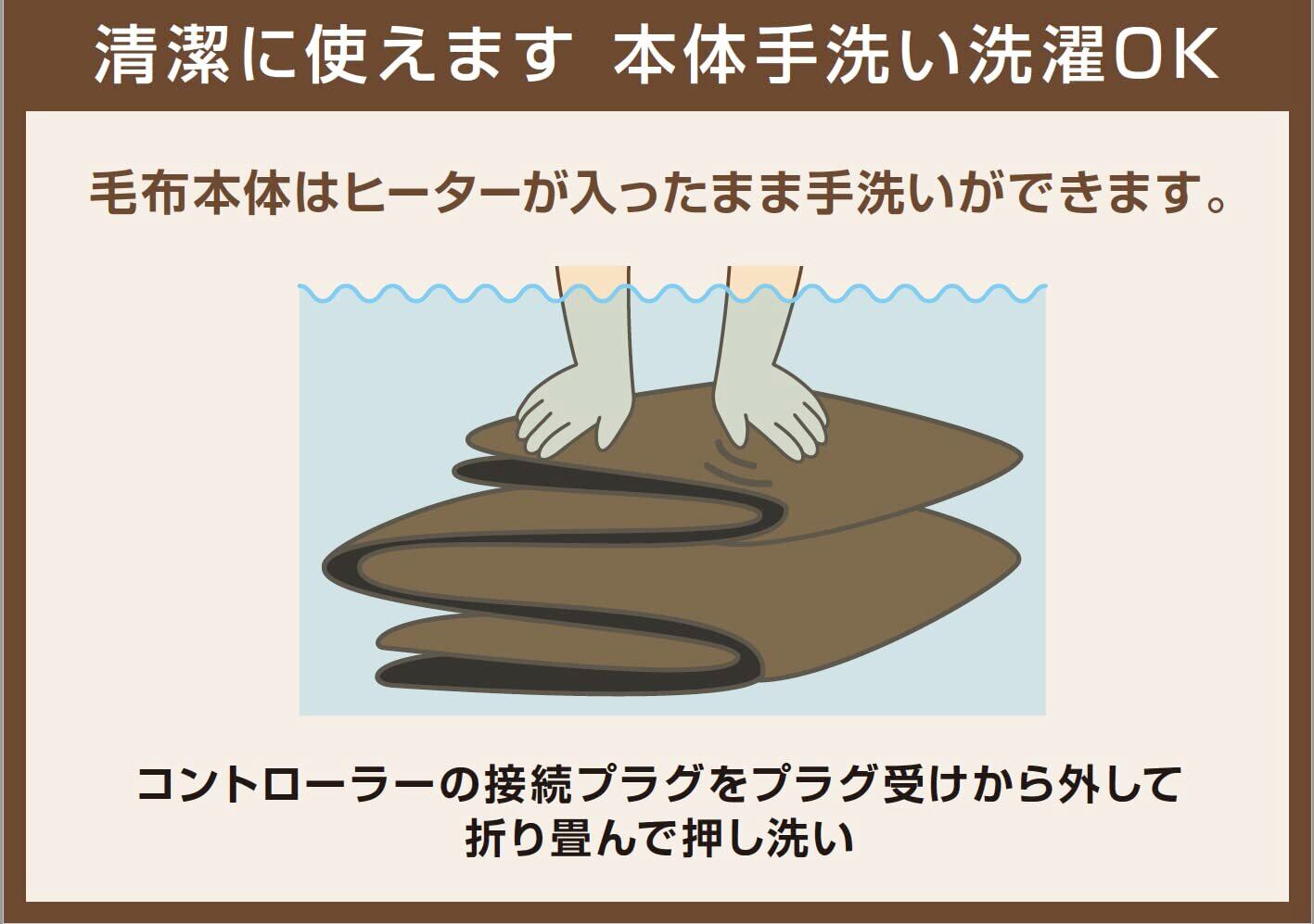 【手洗い&ダニ対策ができる】 清潔さを保つために、丸洗いとダニ対策機能付きの電気敷毛布。 指定の手順に従い約3時間通電することで、ダニ対策ができます。いつでも清潔な状態でお使いいただけます。