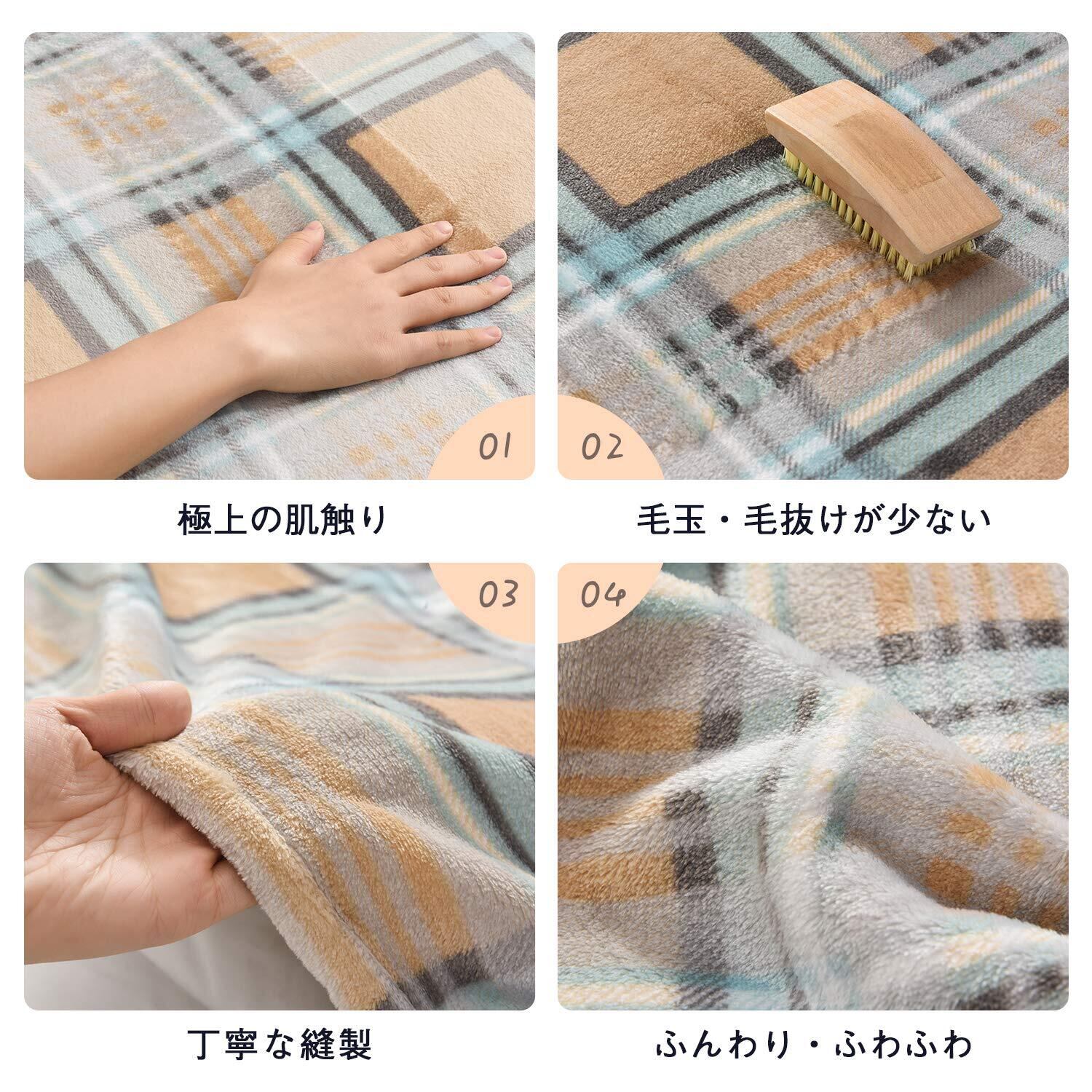 【 限定】クモリ(Kumori) 毛布 140X200cm ふんわり ブランケット 薄手 掛け毛布 マイクロファイバー フランネル 静電気防止 洗える 四季通用 もうふ チェック柄 ベージュXグリーン