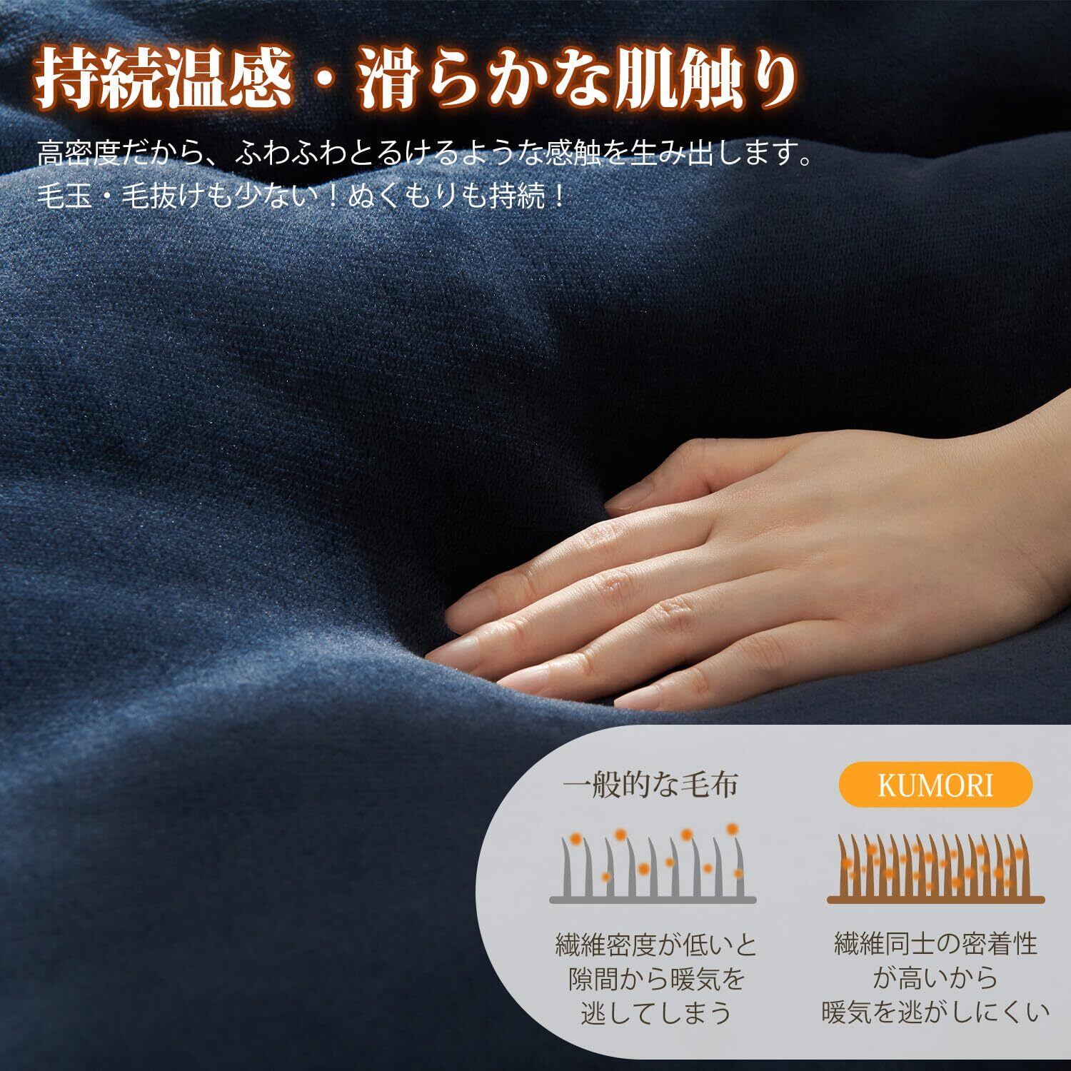 クモリ(Kumori) 掛け布団 シングル 冬用 「極暖シリーズ」 両面フランネル 暖かい 持続温感 2.65kg 厚手 ふんわり あったか 高機能中綿 蓄熱吸湿 ほこりが出にくい 保温 静電気防止 軽量 洗濯可能 掛けふとん 150X210cm ネイビー