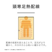 ●頭寒足熱配線:配線の密度を変えているので足元からホカホカと、カラダにやさしい暖かさです。