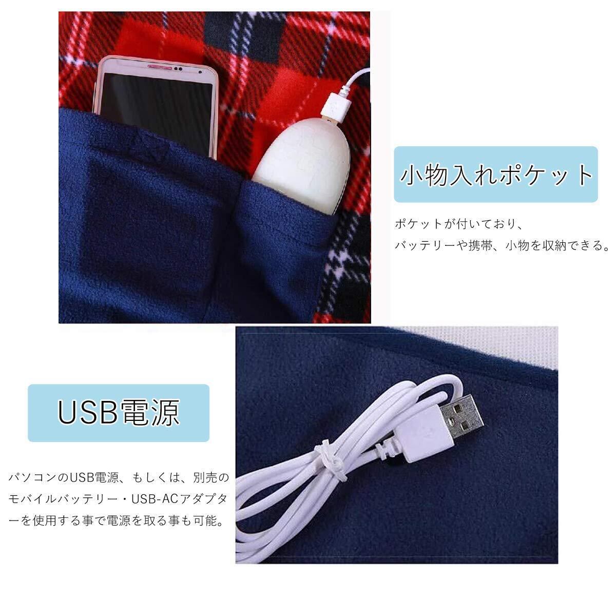 【ご使用は様々なスタイル】敷毛布としてだけではなく 膝に掛けたり、下に敷いたり、ボタン付きなので、ストールのように肩から掛ける事や腰に巻く事も可能です。また、ブランケットにはポケットが付いており、バッテリーや携帯、小物を収納可能。家庭用はもちろん、モバイルバッテリーやUSBハブなどから接続して寒い季節の車中や室内、野外など様々な場所で重宝します。