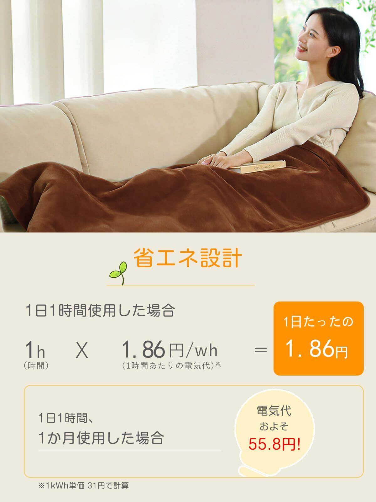 【簡単操作&省エネ】コントローラーはボタンを押すだけで操作しやすく、液晶画面搭載しており、お子様からお年寄り方でも簡単に操作できます。しかも温度調整が細かくできることで、無駄な温度を利用することなく節電にも繋がります。電気毛布はほかの暖房器具と比べて電気代が圧倒的に安い点が魅力があります。「最低温度」(30W)で1時間使っても約0.9えんなので、エアコンより大幅に電気代を削減できます。
