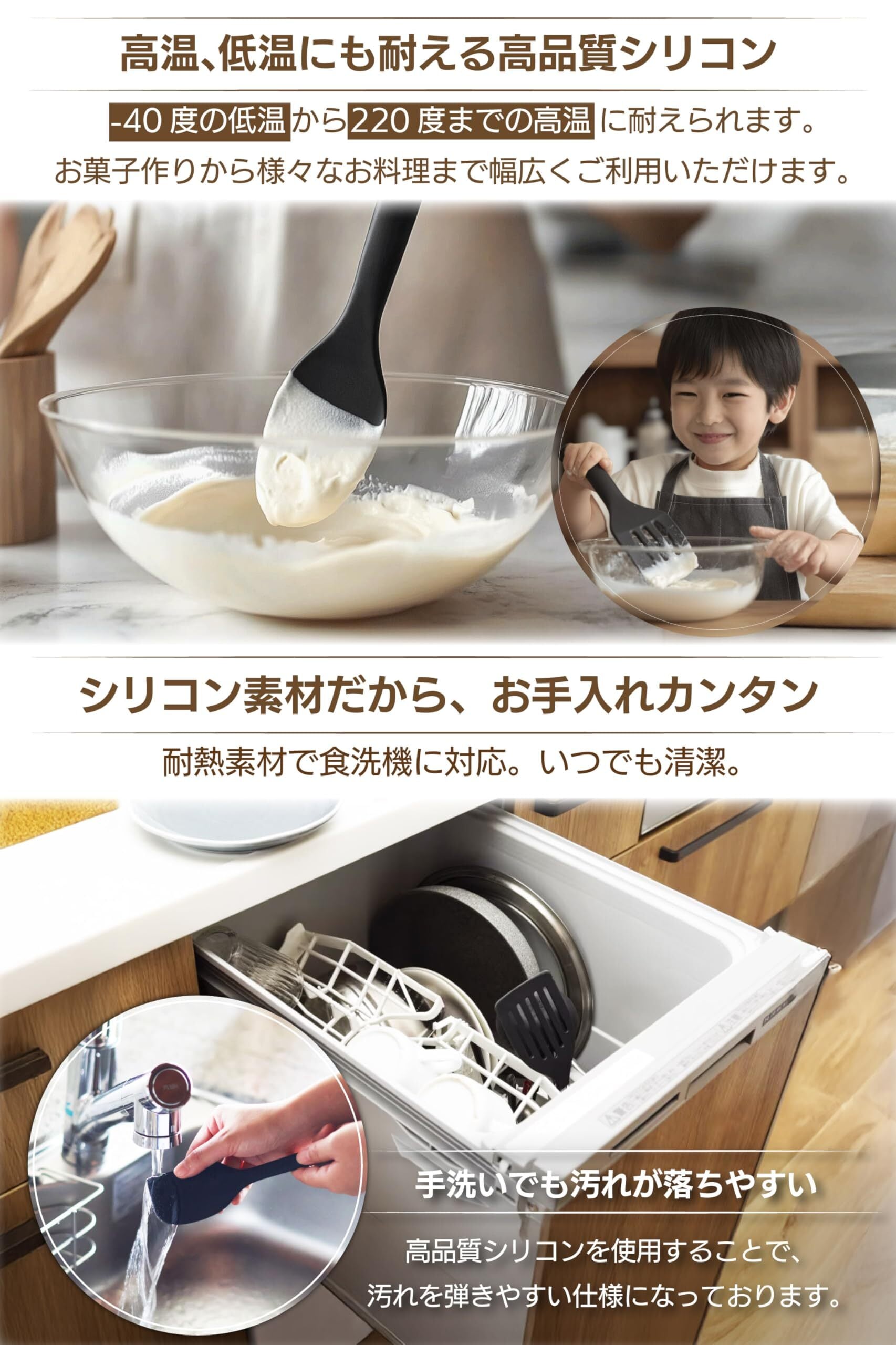 Pop Frog キッチンツールセット おたま お玉 セット シリコン キッチンセット キッチンツール 調理器具 一人暮らし 収納 戸棚 子供 製菓器具 キッチン スプーン シリコンヘラ フライ返し 耐熱シリコン おしゃれ 黒【専門家が監修】 (ブラック)