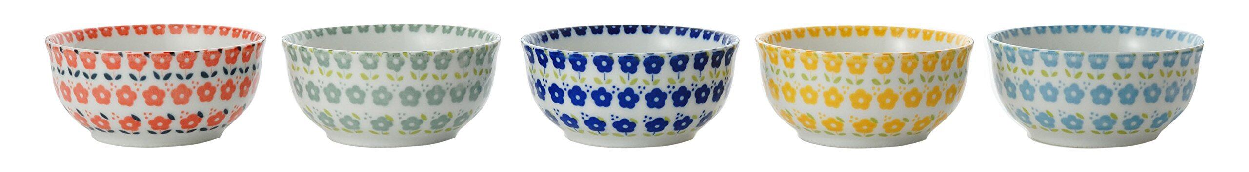 カネセ 磁器 北欧フラワー ボウル 255ml 5色組赤、青、黄色、水色、薄緑約径10.6×高5.0㎝ 20116120