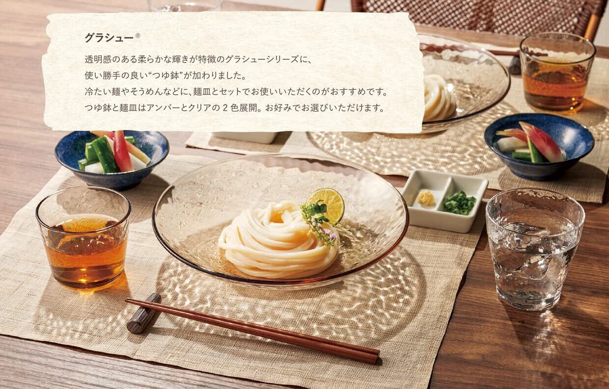 ●そうめんや冷麦、うどん、冷やし中華、冷製パスタなど、夏に食べたい定番料理が映えて、よりおいしそうに見えます。