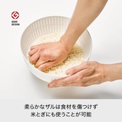 米とぎにも使えるザルとボウル。 ・ザルとボウルのセット ・ザルは細長い縦スリットで効率の良い水切れを実現 ・ザルはお米が潰れにくい柔軟性のある素材を使用 ・ザルは耐熱100℃で湯切りにも使用可能・電子レンジ対応