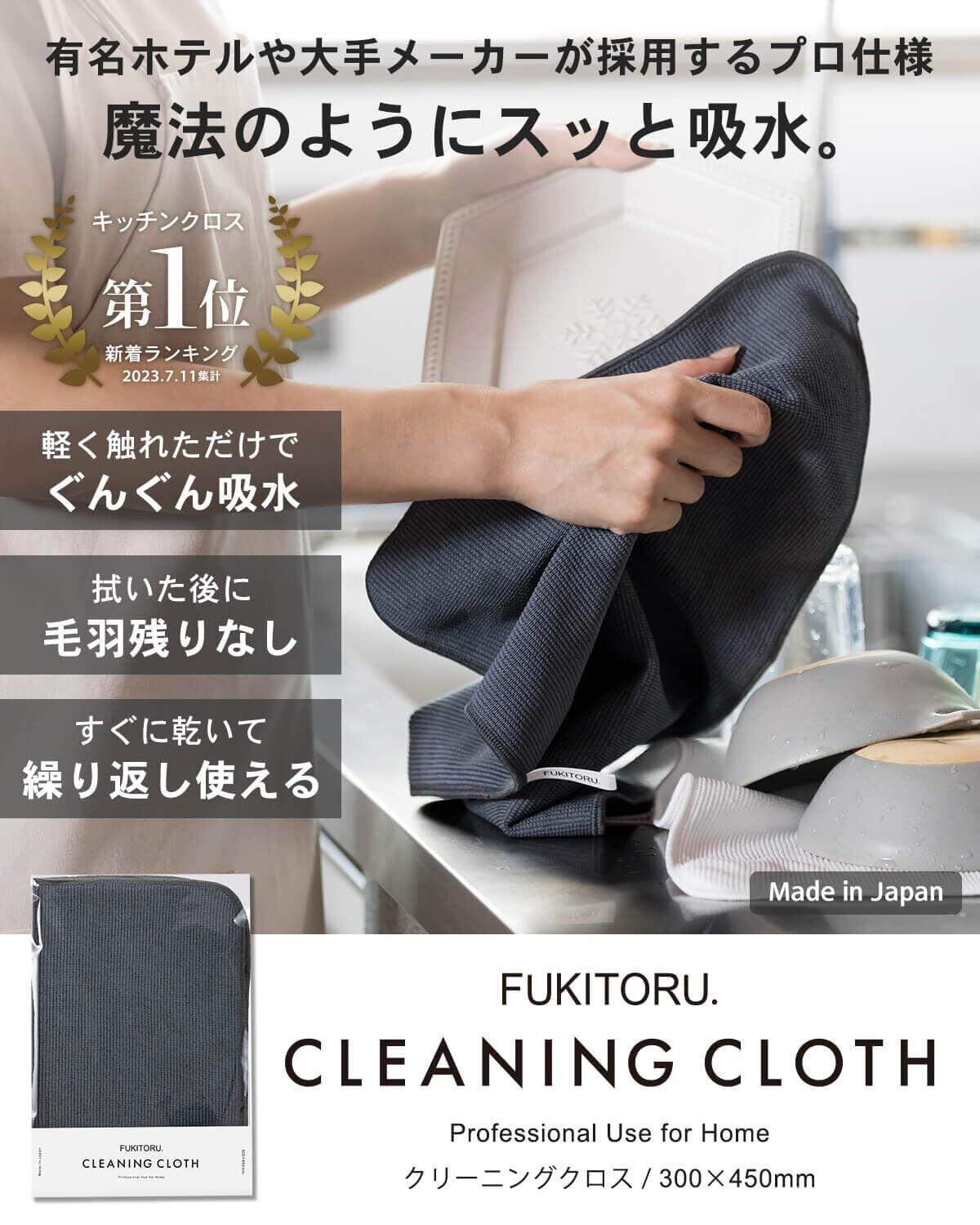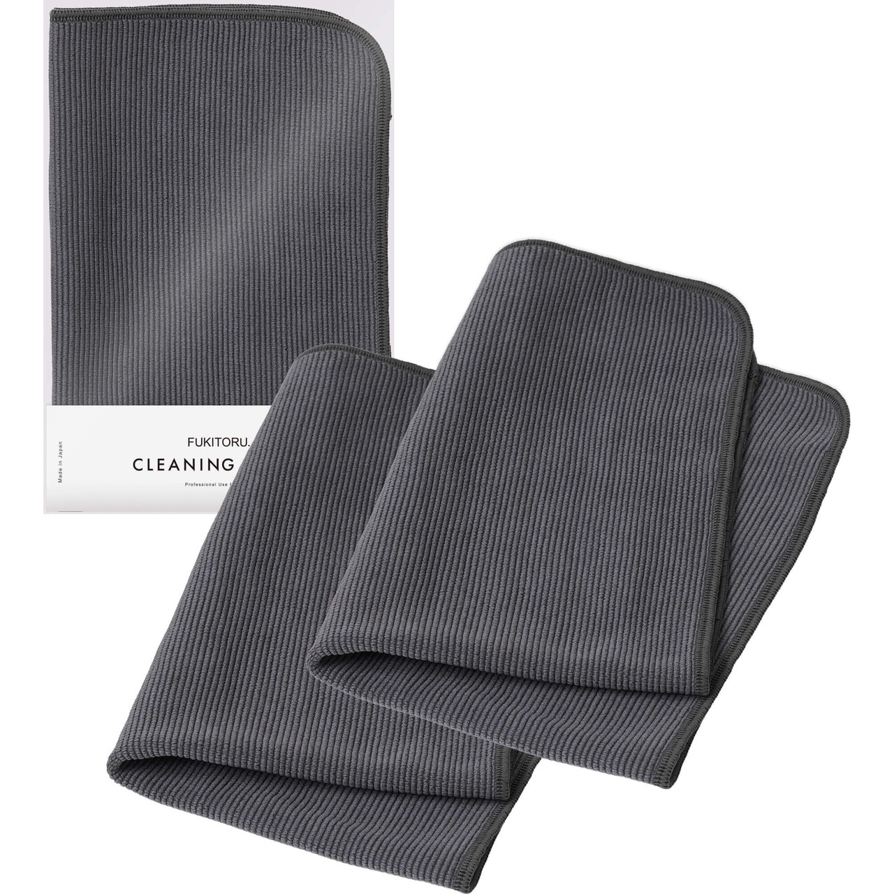FUKITORU. 食器拭きクロス タオル プロ仕様 ぐんぐん吸水 食器拭き上げ ふきん キッチンタオル 2枚セット 30x45cm 日本製 ひっかけループ [拭きあとを残さず食器の水滴をスッと拭き取る] キッチンクロス 布巾 大判 皿 グラス 耐久 吸水 速乾 グレー