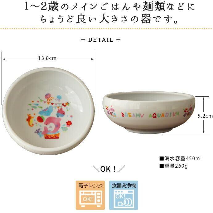 暮らしの彩り 子ども食器 2個セット すくいやすい ボウル 中 径13.8cm 450ml ドリーミーアクア 美濃焼 陶磁器 電子レンジ対応 食洗機対応