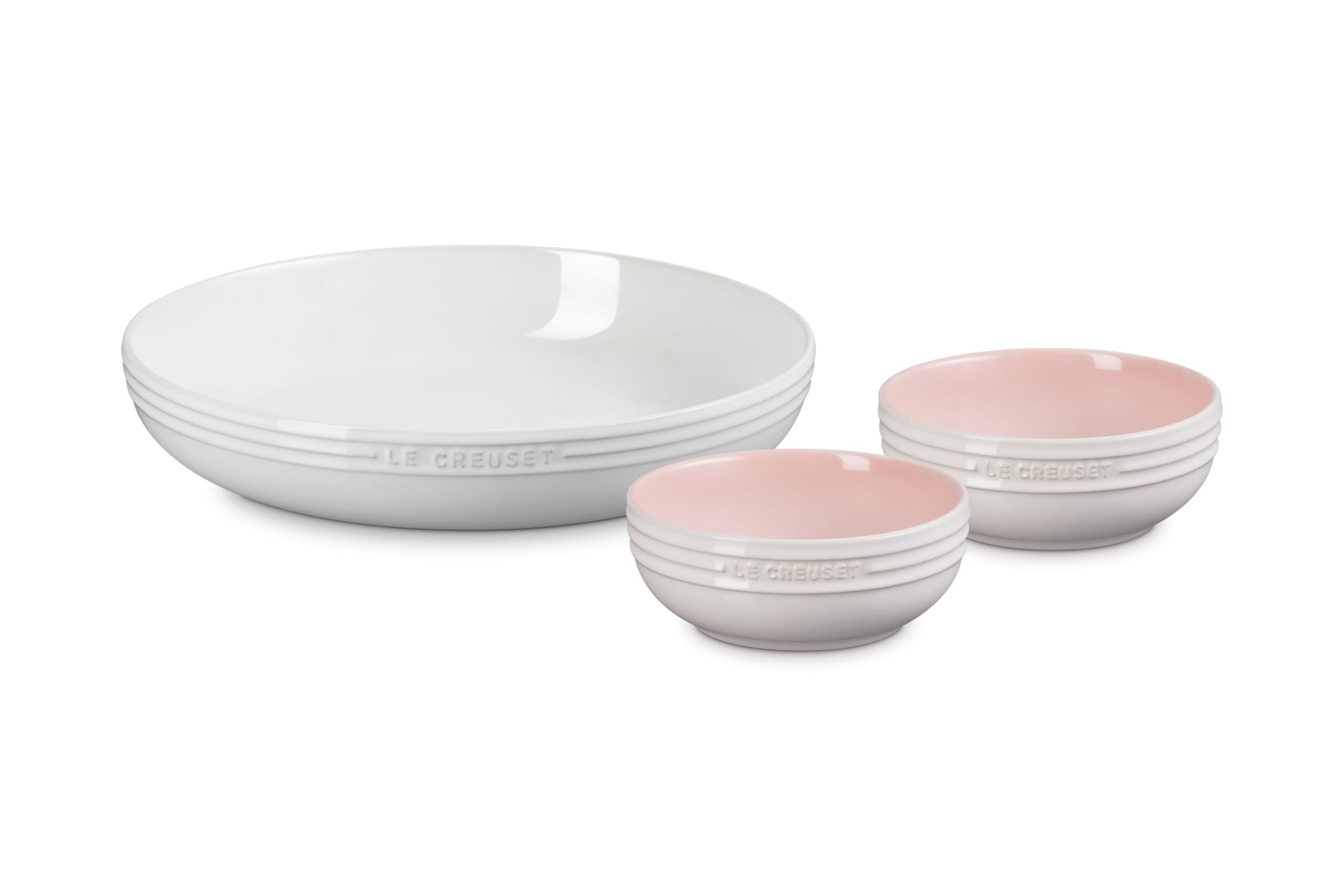 ル・クルーゼ(Le Creuset) テーブルウェア 3点 セット ディッシュ25cm ボール13cm 結婚祝い 記念日 ブライダル ギフト プレゼント 引出物 お祝い 耐熱 耐冷 電子レンジ 食洗器 オーブン 対応 シェルピンク ホワイトラスター 【日本正規販売品】