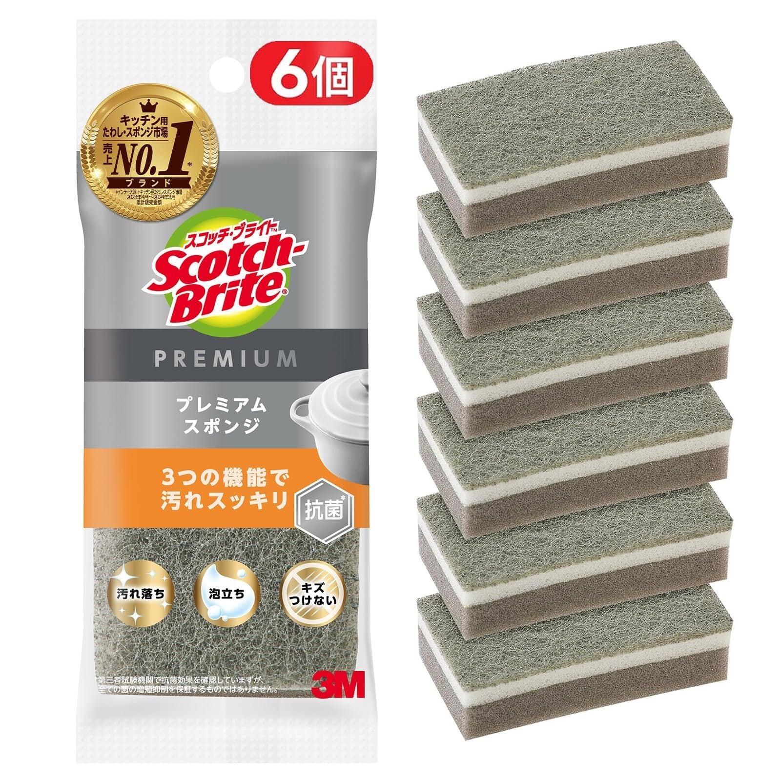 3M スポンジ キッチン キズつけない 抗菌 プレミアム グレー 6個 スコッチブライト KES-01KGY-6P