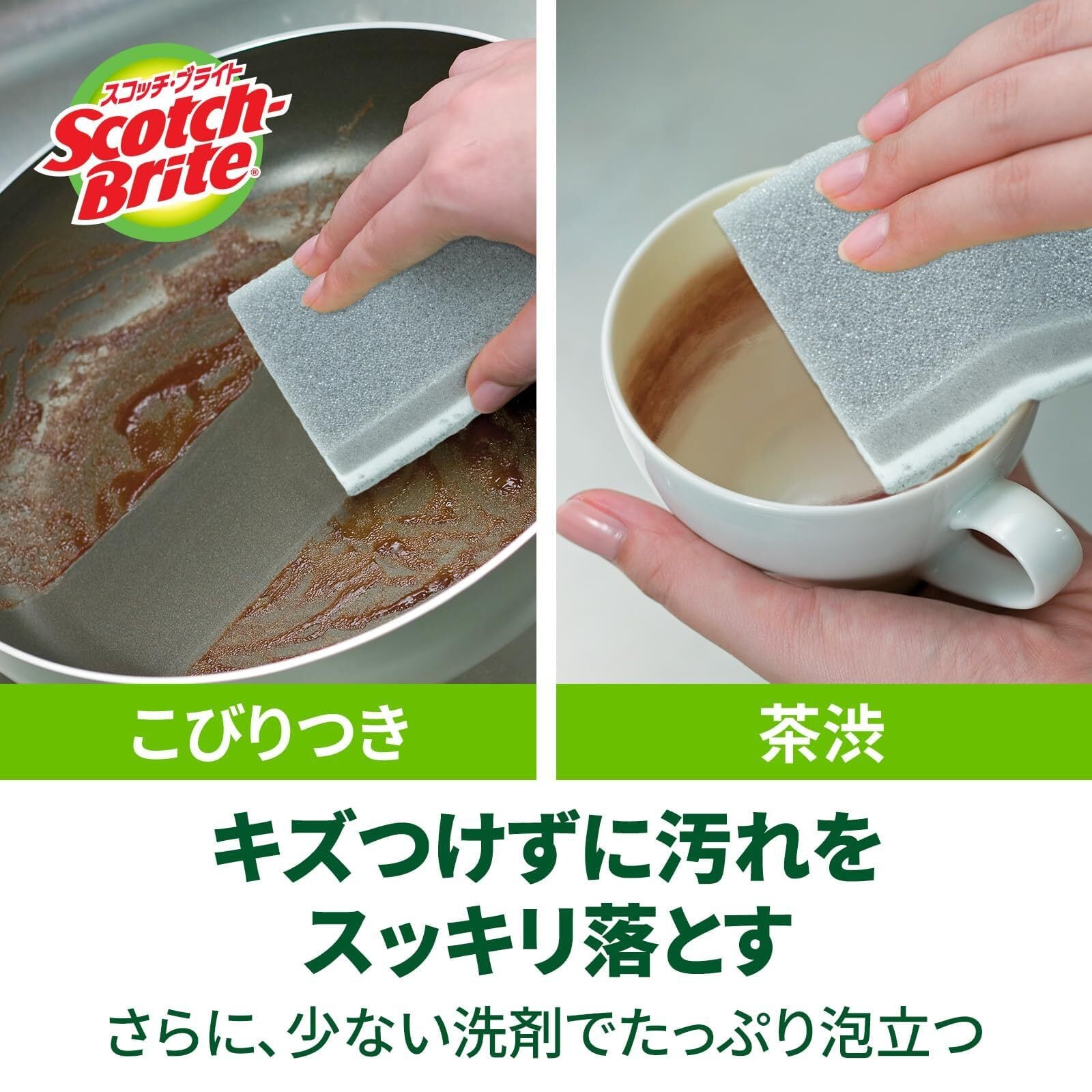 【頑固な汚れもスッキリ落とす、ワンランク上のスポンジ!】ハイブリッド研磨粒子配合で、茶渋や着色汚れ、油汚れからコゲつきまでパワフルに落とせます。