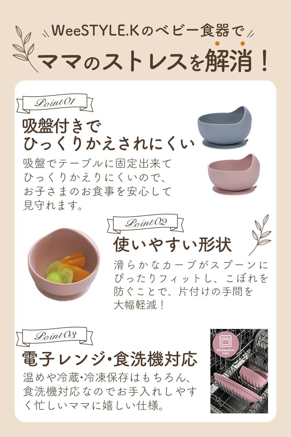 【雑誌掲載 保育士監修】 ベビー食器 ボウル 吸盤付き 離乳食 食器 出産祝い 男の子 WeeSTYLE (くすみブルー)