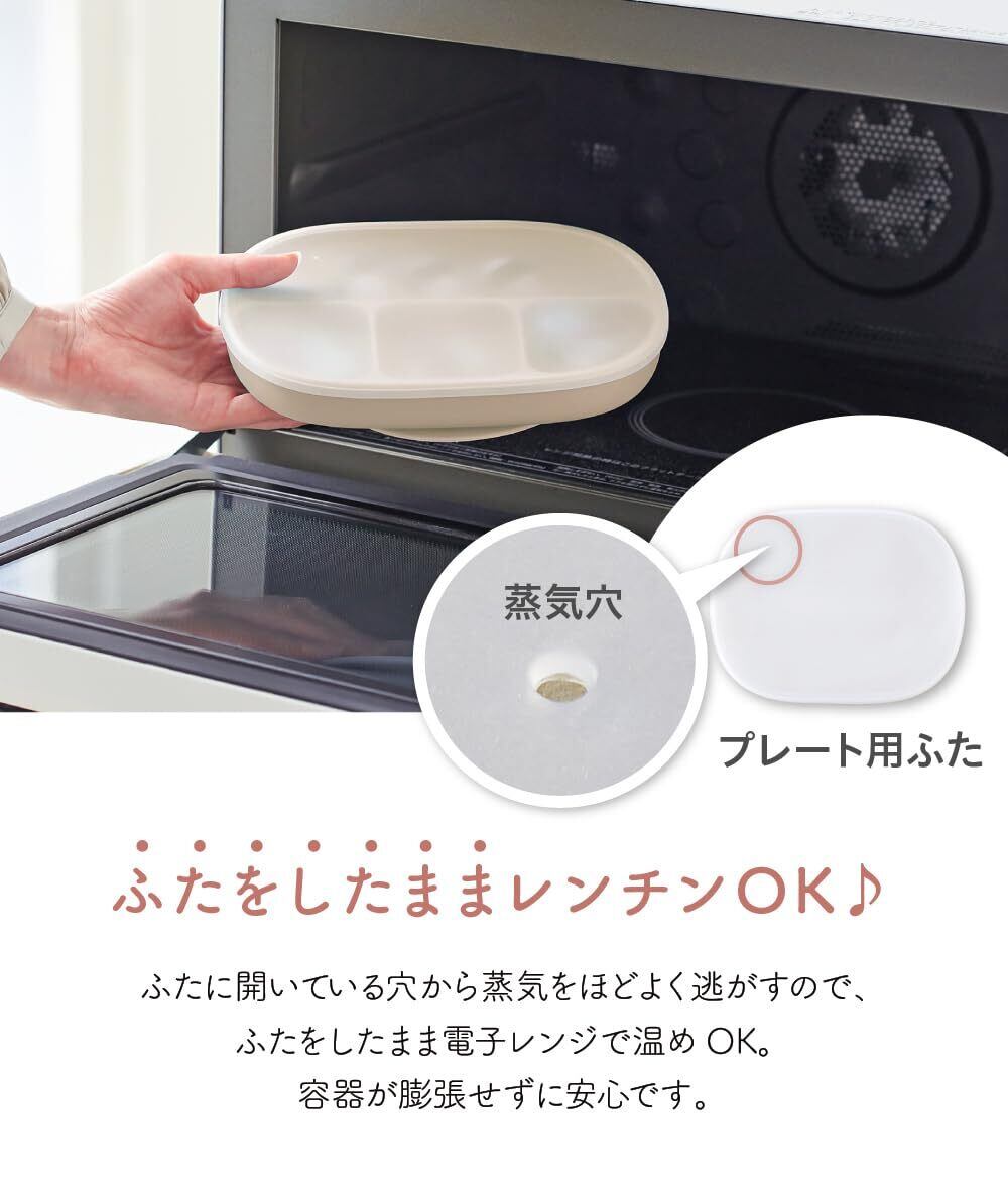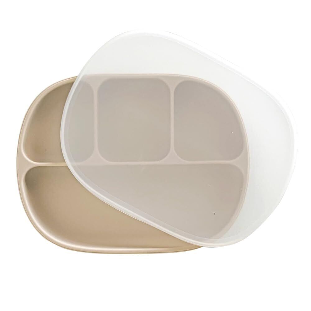 regalo ベビー食器 ふた付きプレート 食品衛生検査済み 離乳食 電子レンジOK シリコン 食洗機対応 吸盤付き (ベージュ)