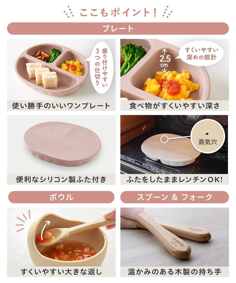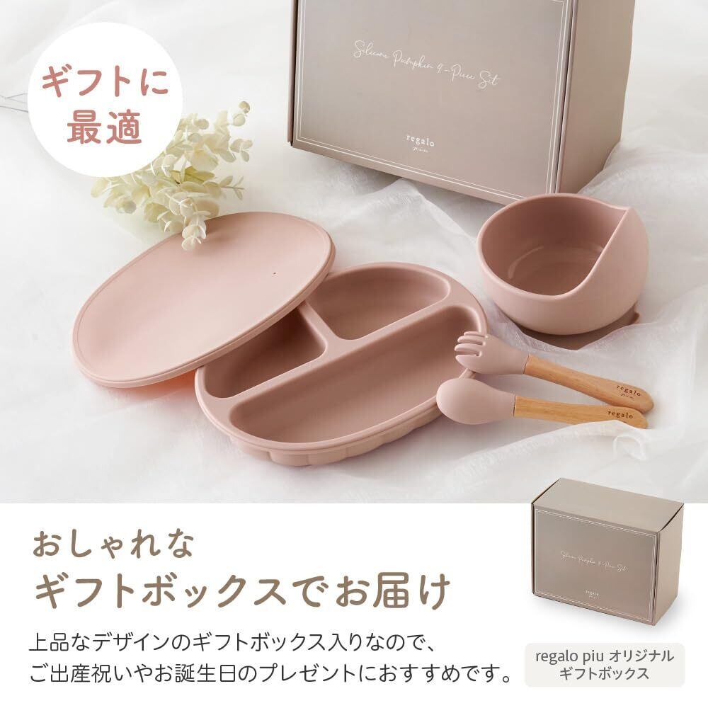 regalo ベビー食器 ひっくり返らない4点セット 食品衛生検査済み 吸盤付き 電子レンジOK シリコン 食洗機対応 離乳食 出産祝い プレート (ベージュ, 4点セット)