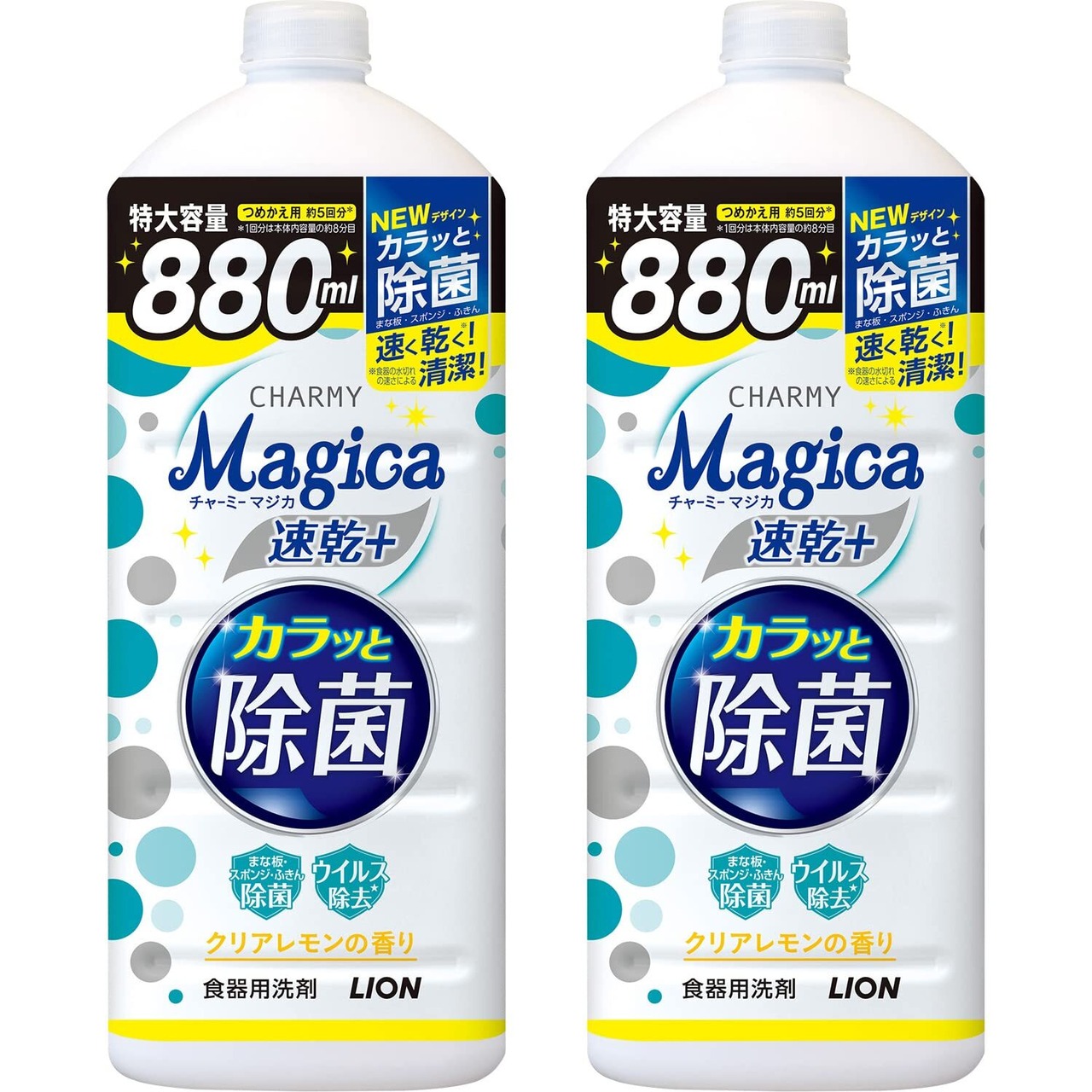 チャーミー マジカ(CHARMY Magica) 【まとめ買い】 チャーミーマジカ 食器用洗剤 速乾+カラッと除菌 クリアレモンの香り つめかえ用大型サイズ 880ml × 2個
