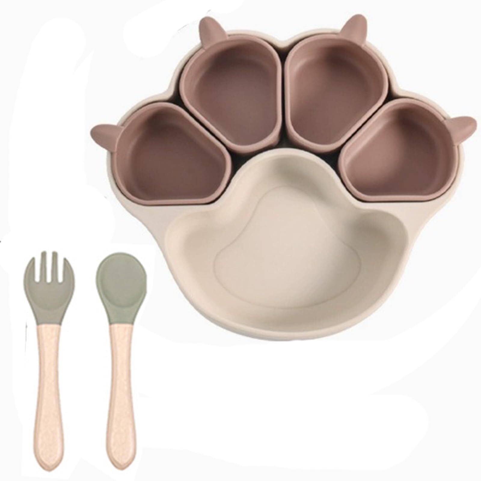 ベビー食器セット 離乳食 赤ちゃん用可分離式食器 ひっくり返らない 吸盤 すくいやすい シリコン ボウル スプーン フォーク トレーニングカトラリー