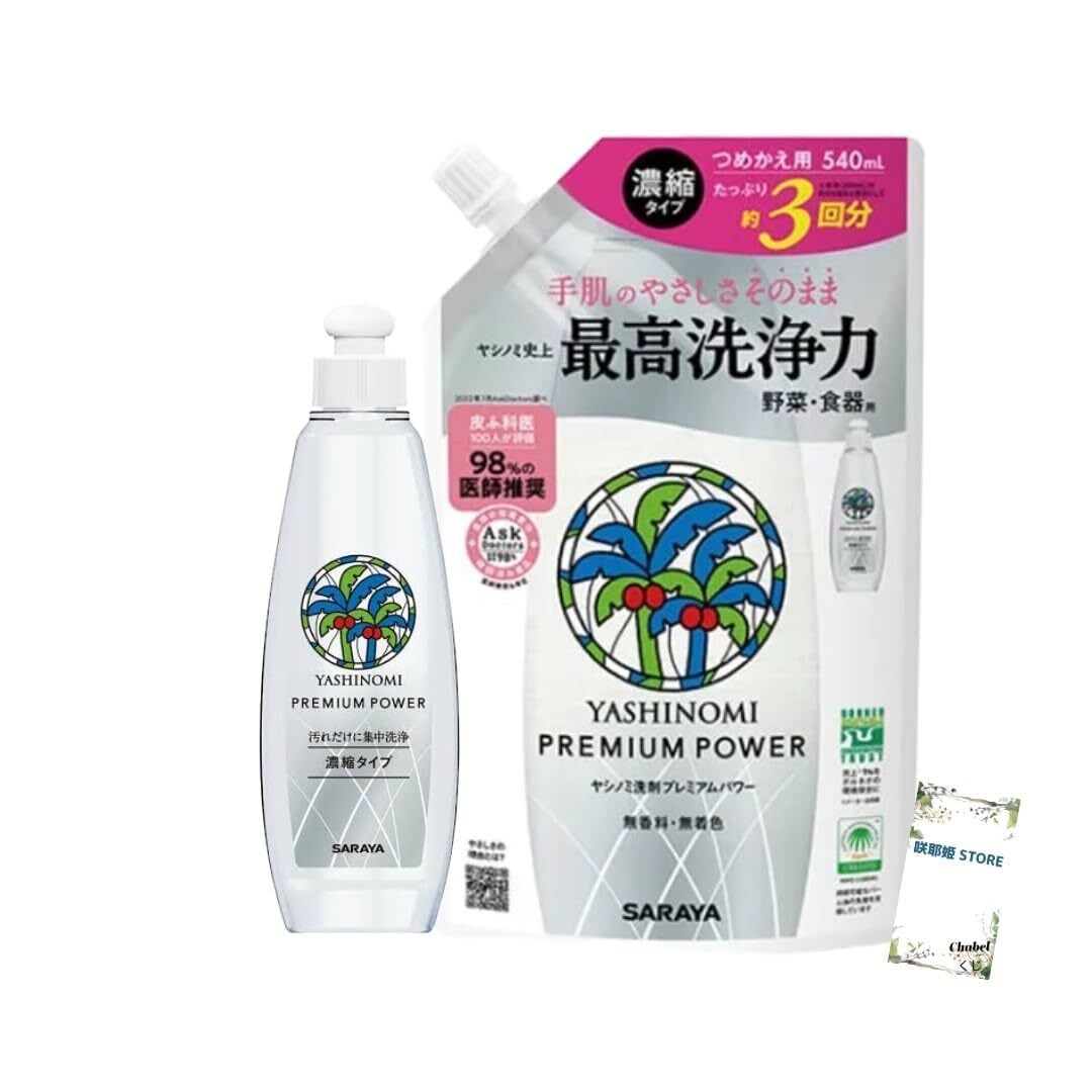 サラヤ ヤシノミ プレミアムパワー 食器用 洗剤 濃縮タイプ saraya 無香料 無着色 無色透明 本体200ml + 詰替540ml 各1個セット +咲耶姫STOREオリジナルくじ