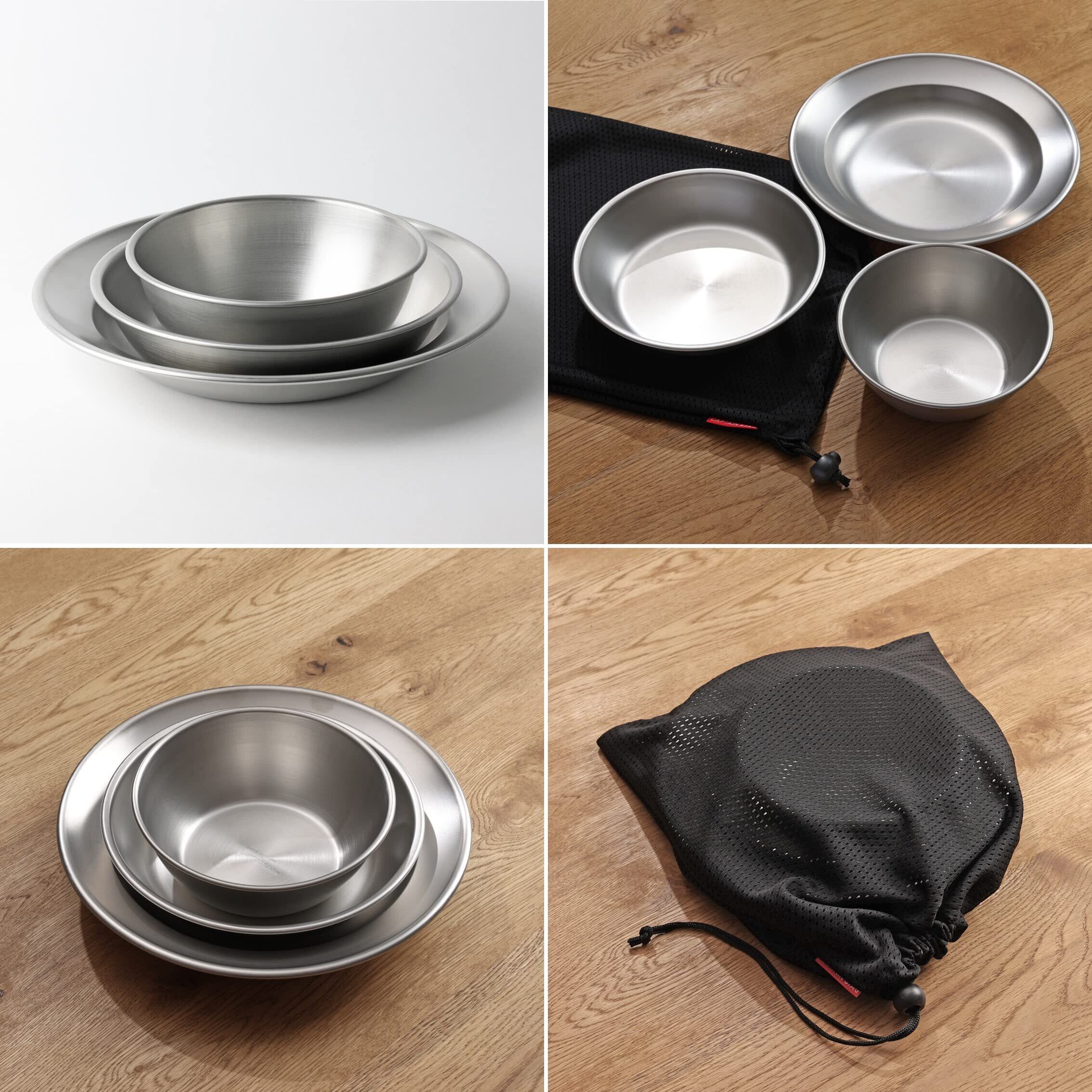 【 限定】 キャプテンスタッグ(CAPTAIN STAG) 食器セット テーブルウェアセット ボール プレート カレー皿 収納袋付き 18-8 ステンレス製 日本製 燕三条産 UY-7036 シルバー 外径140×高さ50mm
