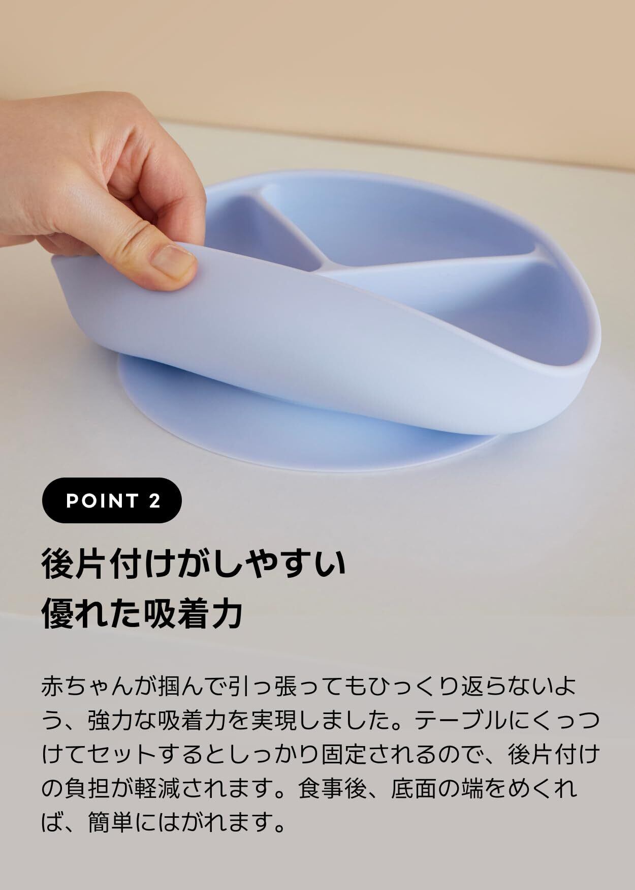 【ひっくり返らない】超強力吸盤がテーブルにしっかりと固定され、掴んで揺らしても食べ物がこぼれにくいのでお食事タイムがより楽になります。