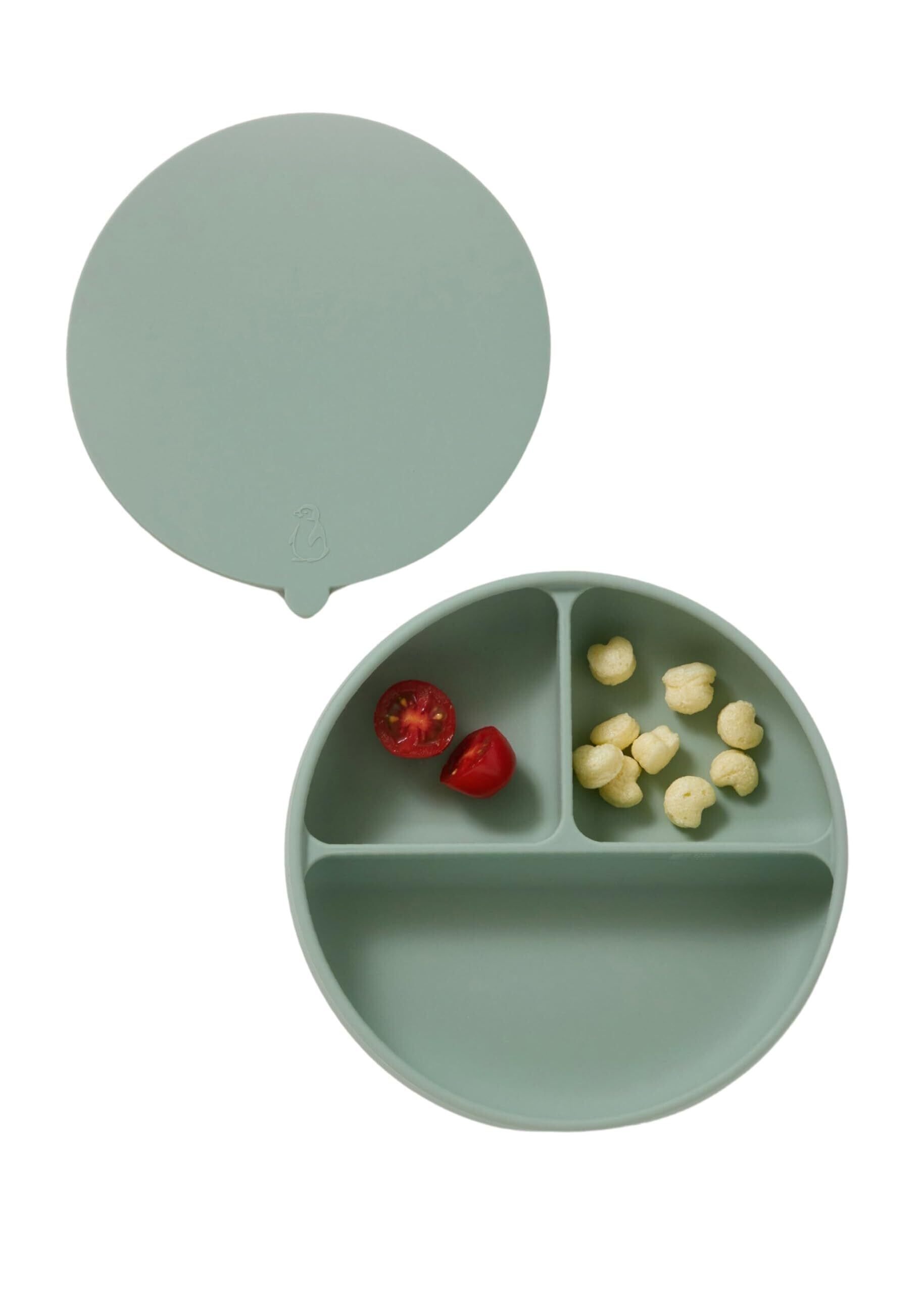 【Konny】コニーEasyFeedシリコンプレートひっくり返らない プラチナシリコン食器 吸盤付き お食事 BLW 赤ちゃん主導の離乳食 ベビー食器 (Sage、セージ)