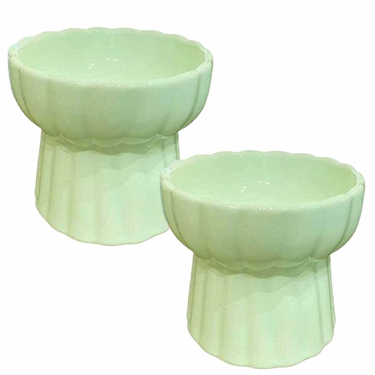2個セット食べやすい 猫 食器 陶器 フードボウル スタンド 脚付 猫用 餌皿 ねこ 餌入れ ウォーターボウル セラミック 犬 子猫 ご飯 皿 食器台 ペット食器 Mayachiu (グリーン/グリーン)