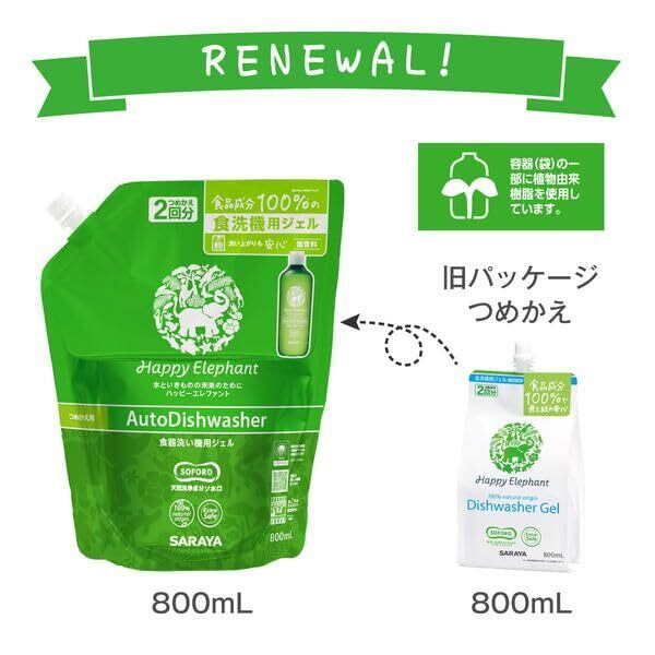 サラヤ ハッピーエレファント 食器洗い機用 ジェル 詰め替え 800ml 3個セット