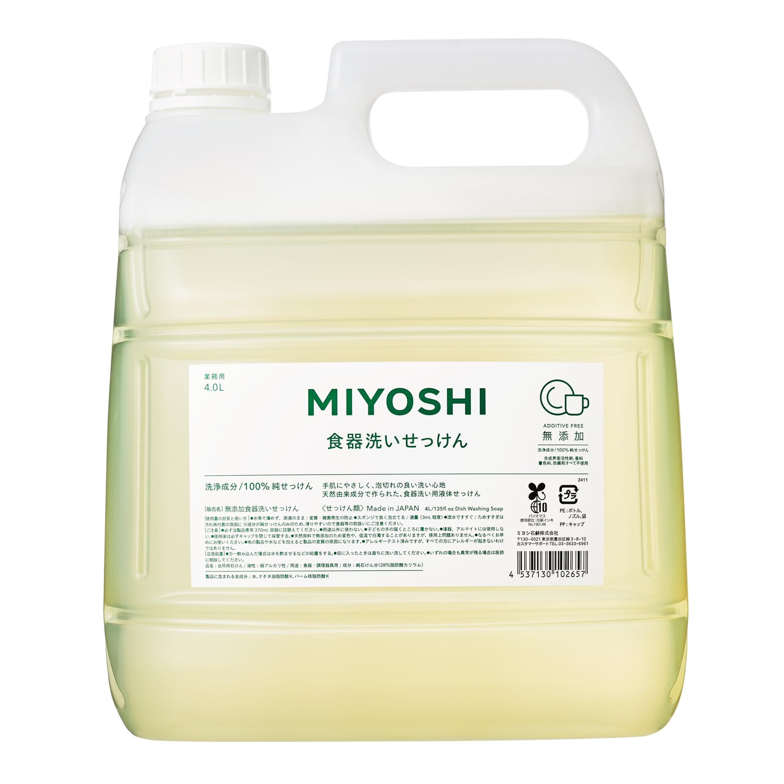 無添加 食器洗いせっけん 業務用 4L