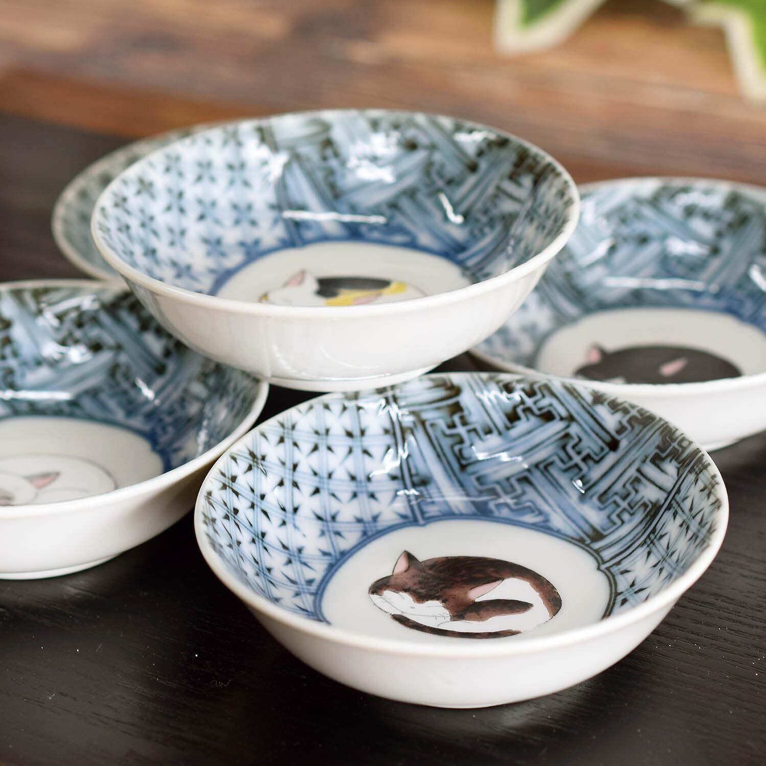 和座の蔵 おしゃれ 食器 焼き物 九谷焼 小鉢 5個セット 眠り猫 陶器 高級 ブランド 和食器 和柄 取り皿 日本製 結婚祝い プレゼント お返し 内祝い ギフト