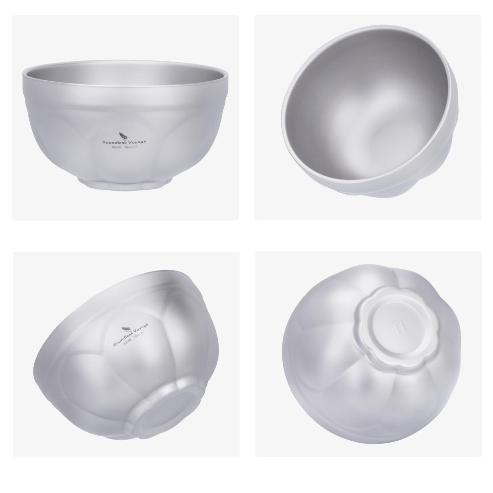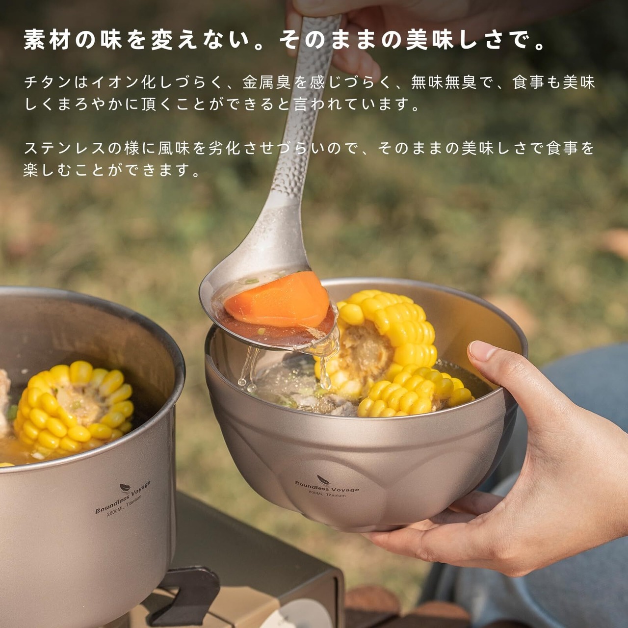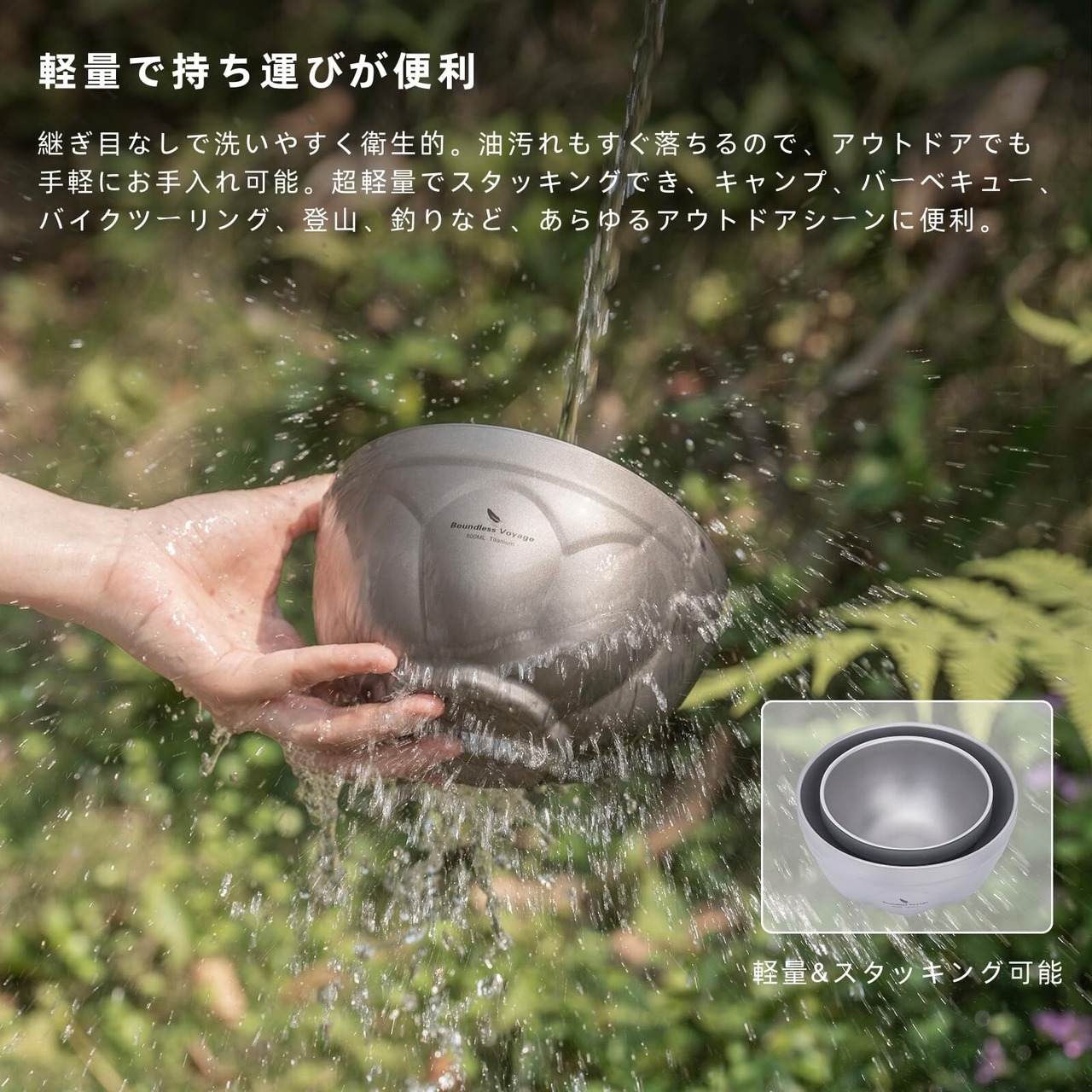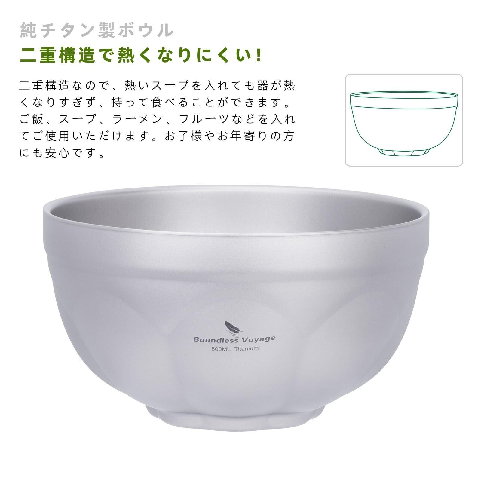 Boundless Voyage チタンお茶碗 二重層 800ml ダブルボウル 子供用 大人用 耐熱 軽量 丈夫 熱くない ラーメン鉢 ご飯お椀 スープ ライスボウル テーブルウェア 食器 アウトドア キャンプ用品 (チタンお茶碗 800ml)Ti1172T