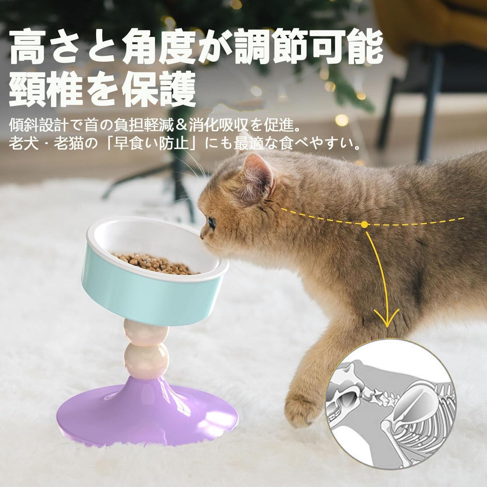 【使いやすい】このペット食器台は猫や犬にとって非常に便利です。猫用お皿は、組み立ても簡単です。餌用の容器を高さと角度が自由に調整できるので、首に負担なく、老犬にも優しい、愛猫が快適に食べられます。