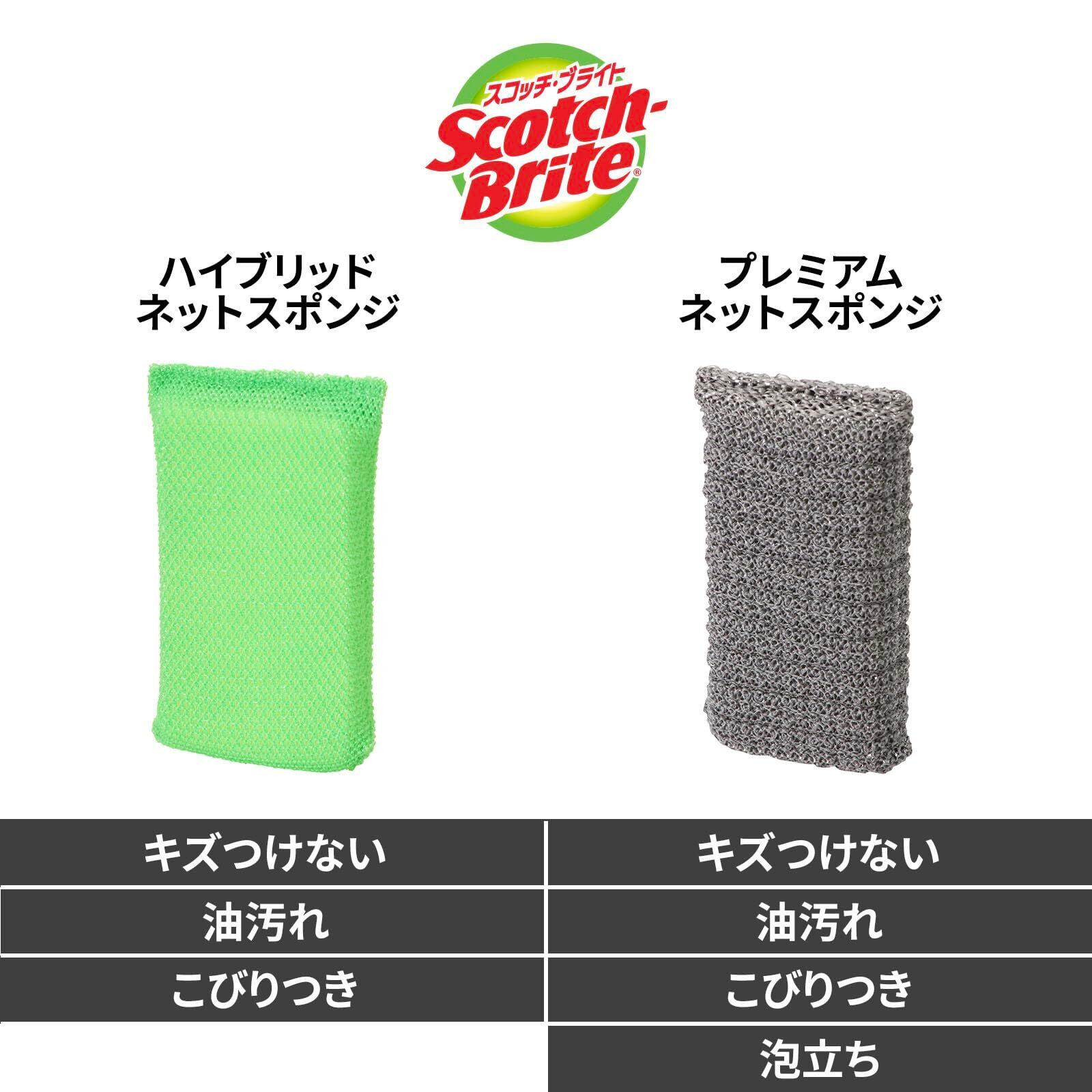 3M スコッチブライト プレミアム ネット スポンジ 食器洗い キッチンスポンジ 食器用スポンジ フライパン グレー 6個