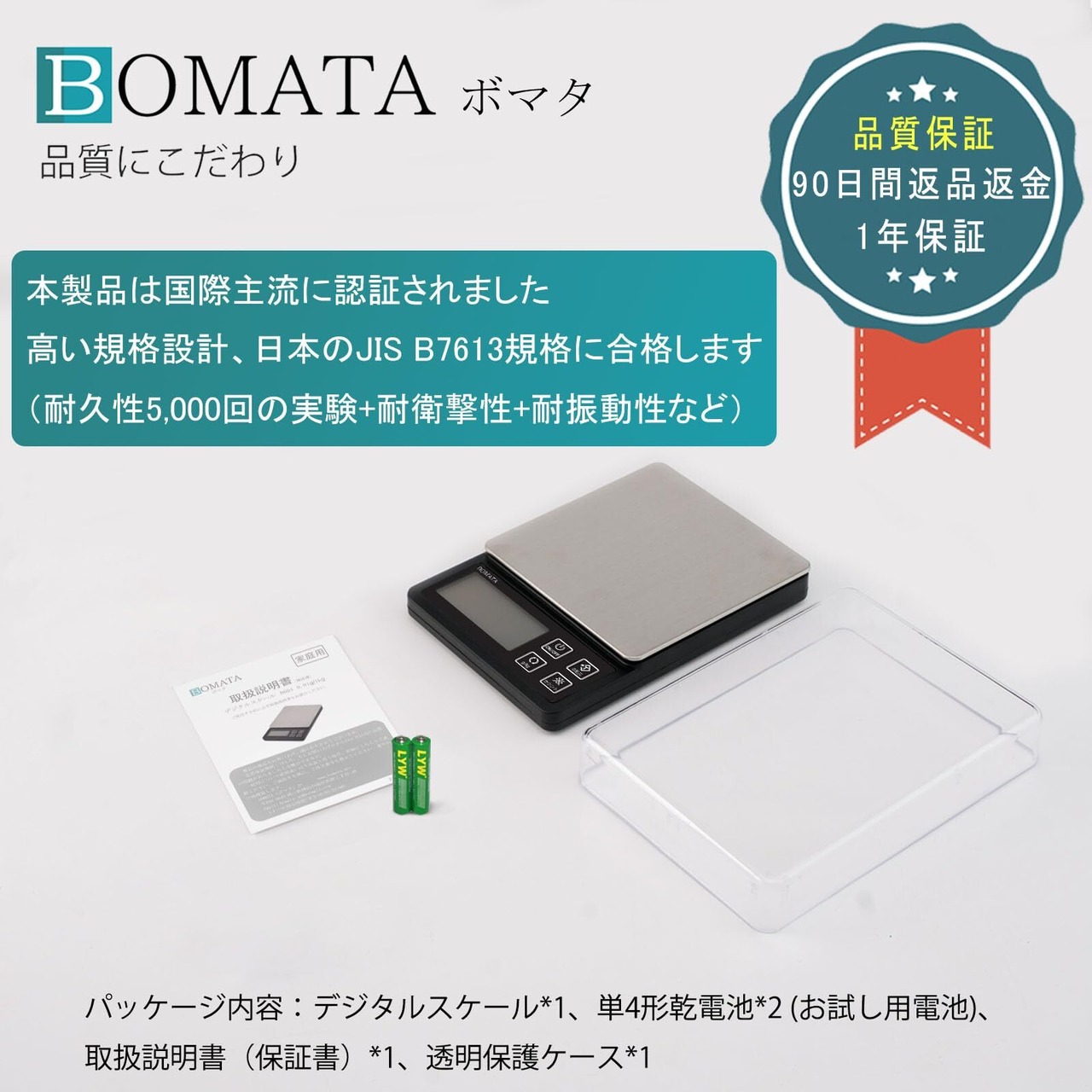 BOMATA(ボマタ) はかり デジタル キッチン 0.01g単位 最大計量1kg コンパクト 風袋引き 計数機能 ステンレス鋼 計量器 スケール 測り 【料理 お菓子 宝石 粉】B604D 乾電池式 黒…