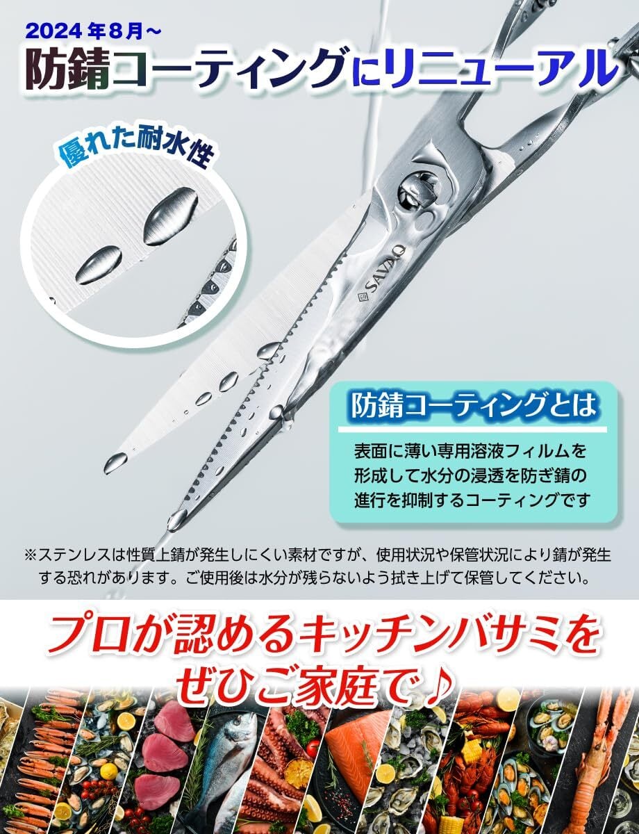 【プロ料理人が監修】SAVAQ キッチンバサミ 料理はさみ 分解 オールステンレス 食洗機対応 軽量タイプ