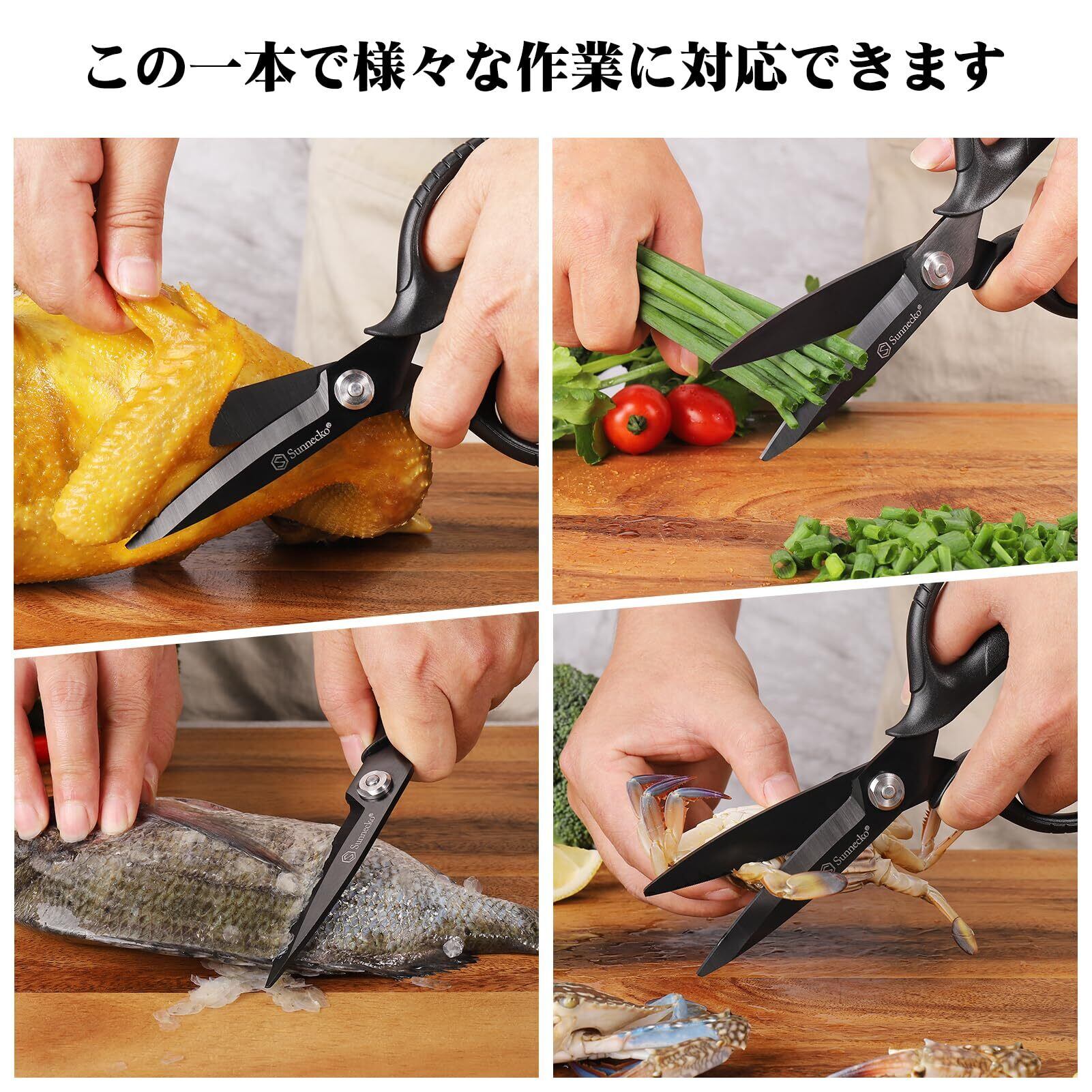 Sunnecko キッチンバサミ 料理はさみ キッチンハサミ 分解 食洗機対応 ステンレス チタンコーティング 黒