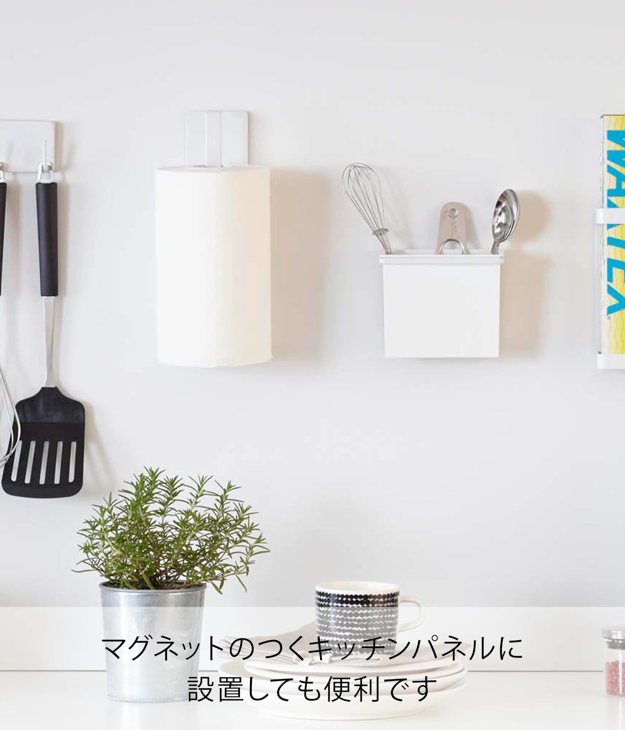 冷蔵庫横などにマグネットで簡単取り付けのキッチンペーパーホルダー。横向きに使えばタオルも掛けられます。