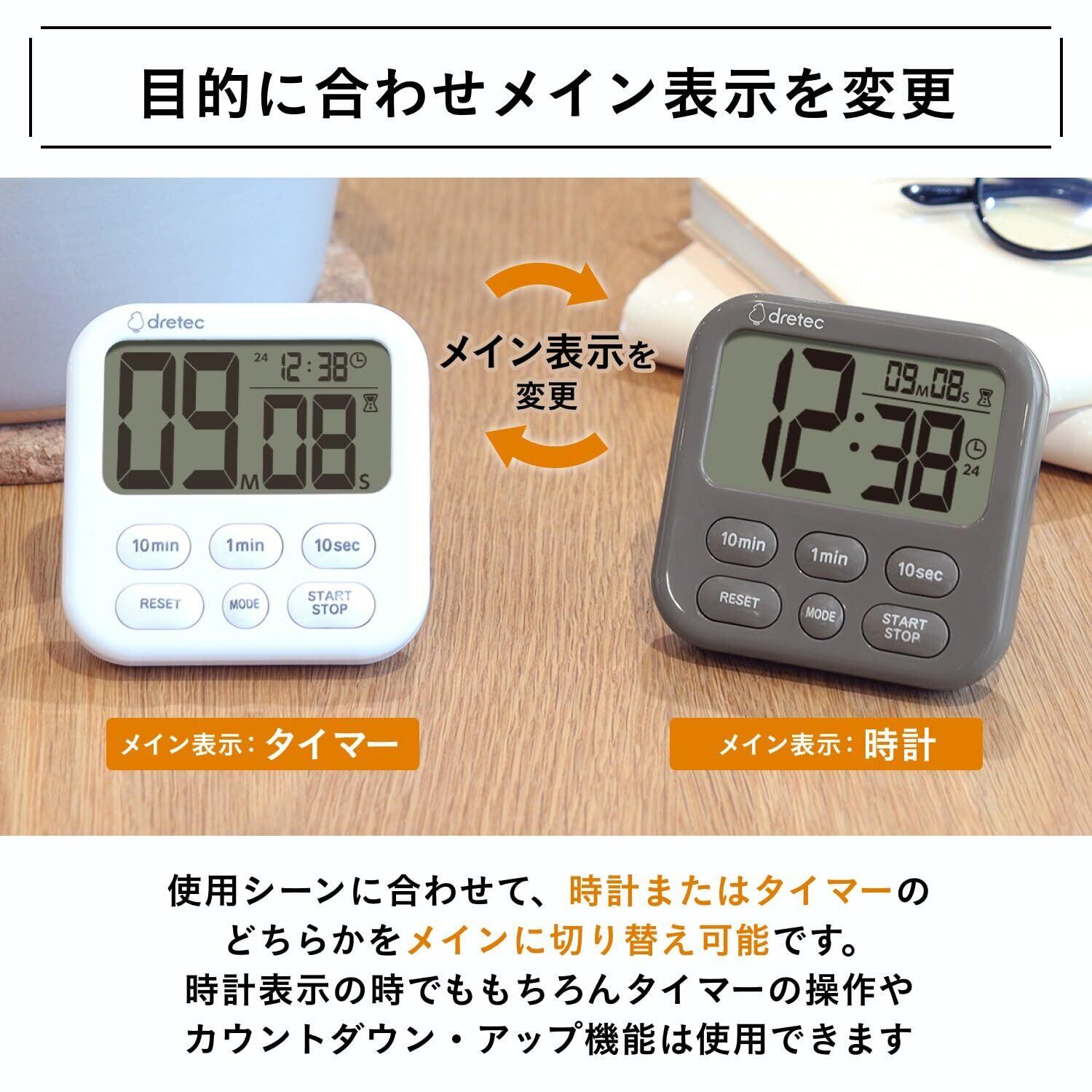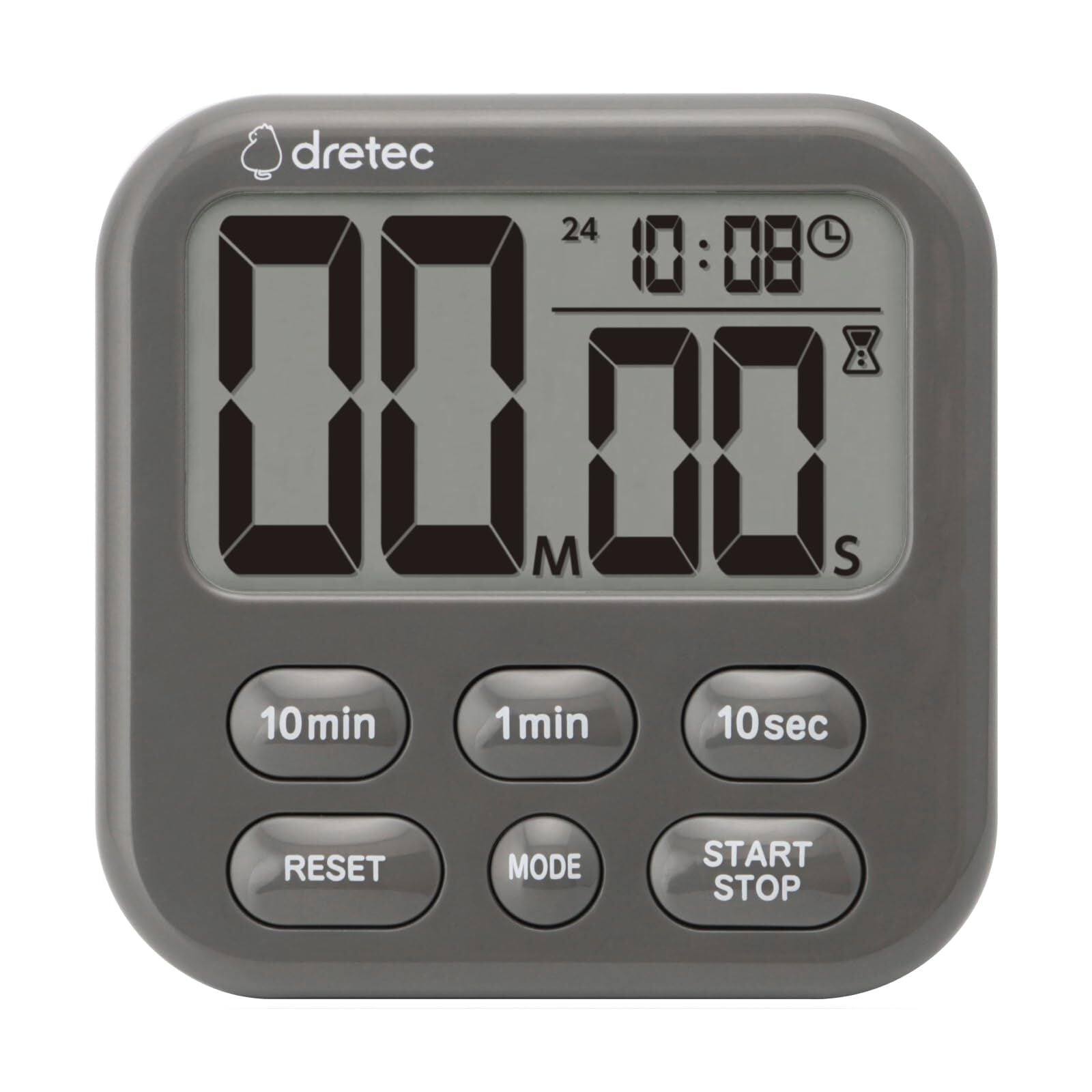 ドリテック(dretec) タイマー 大画面 切替え不要! 時計とタイマーを1画面に表示 勉強 キッチン シャボン6 ダークグレー