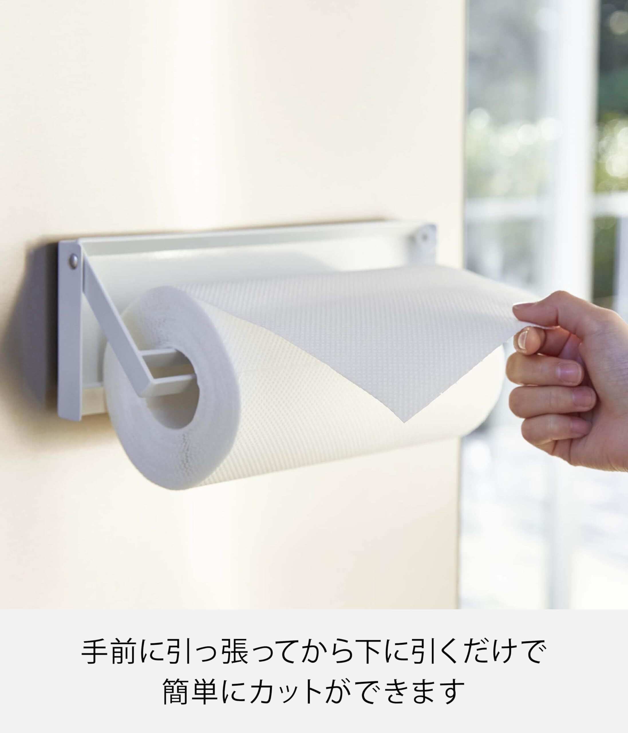 片手でカットできるマグネットキッチンペーパーホルダー。