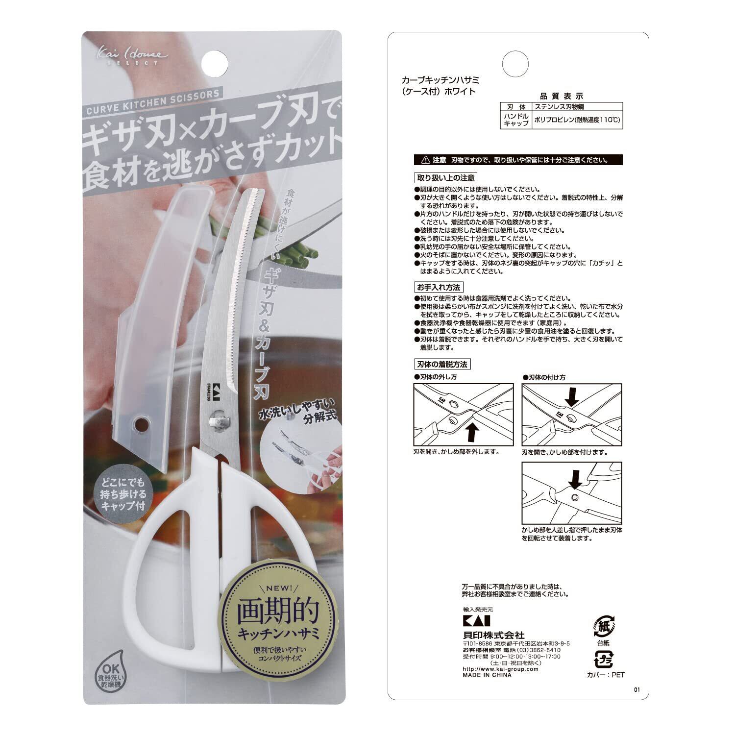 貝印 KAI キッチンバサミ 分解 カーブ ケース付 ホワイト キッチンツール Kai House Select DH2051