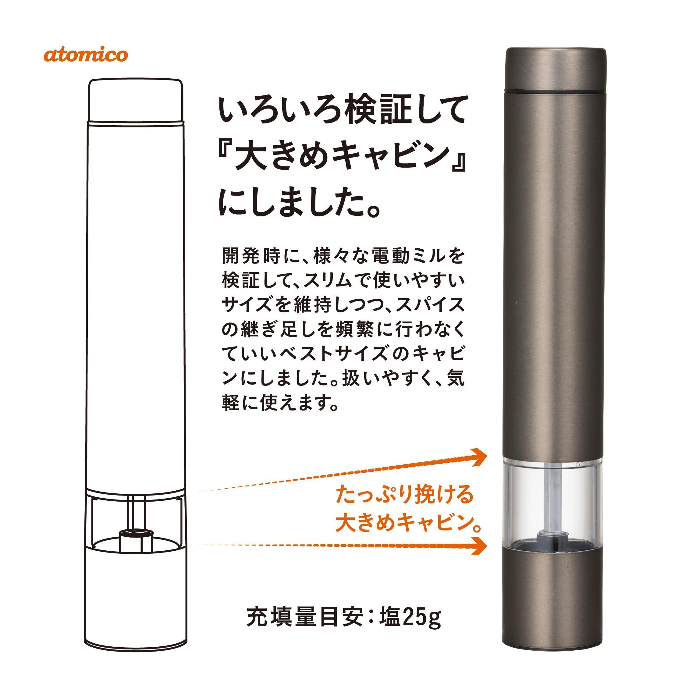 シービージャパン 電動ミル ペッパーミル [カッパー&グラファイトグレー 2本セット] 専用ウッドスタンド付 岩塩 胡椒 スパイス 粗さ調節可能 atomico
