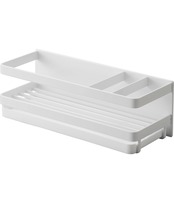 山崎実業(Yamazaki) マグネット スポンジ & ディスペンサーラック トレー付き ホワイト 約W25.5×D9.5×H9cm タワー tower スポンジ置き フック付き 浮かせる収納 3972