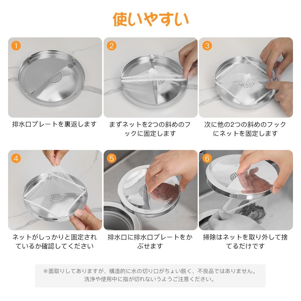 Aieve 排水口カバー キッチン排水口ゴミ受けネット取り付けプレート ステンレス製 30枚ネット付き ゴミ捨て楽ちん 悪臭防止 水はけいい 衛生的 キッチン シンク 流し用 口径14.5cm対応 中