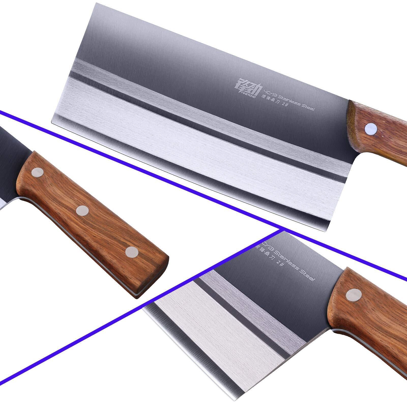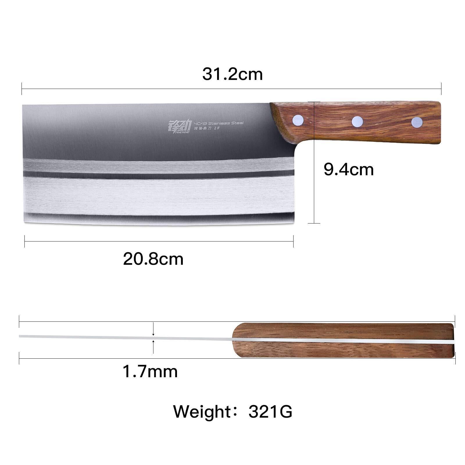 FINDKING中華包丁【RuiFeng】 キッチンナイフ ステンレス鋼 木材製ハンドル メルバウ 滑り止めハンドル 鋭い切れ味 家庭用 レストランで 208mm