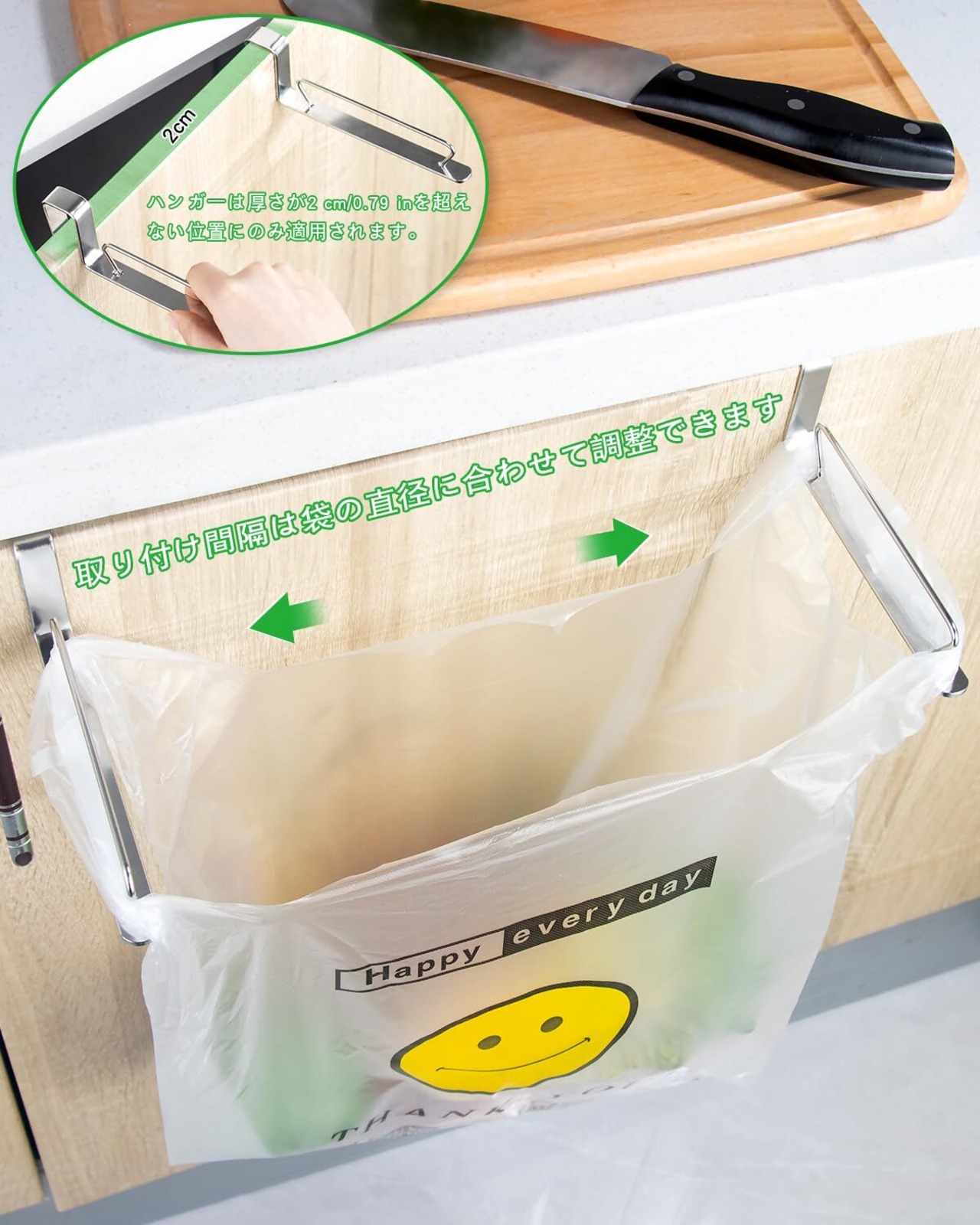 YQhゴミ袋ラック、ドア掛けビニール袋ラック、レジ袋ホルダー、ゴミ袋フック、ゴミ箱、ビニール袋再利用、キッチン戸棚ドア収納用品、18-8ステンレス、省スペース